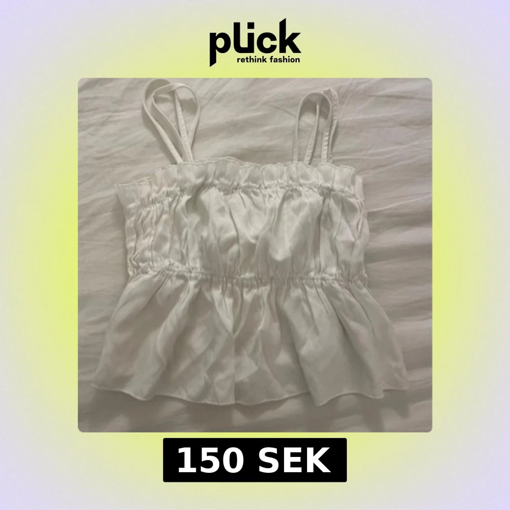Säljer en söt vit ärmlös topp med dubbla axelband och volangdetaljer. Toppen har en luftig och lätt design, perfekt för varma dagar. Aldrig använd!!