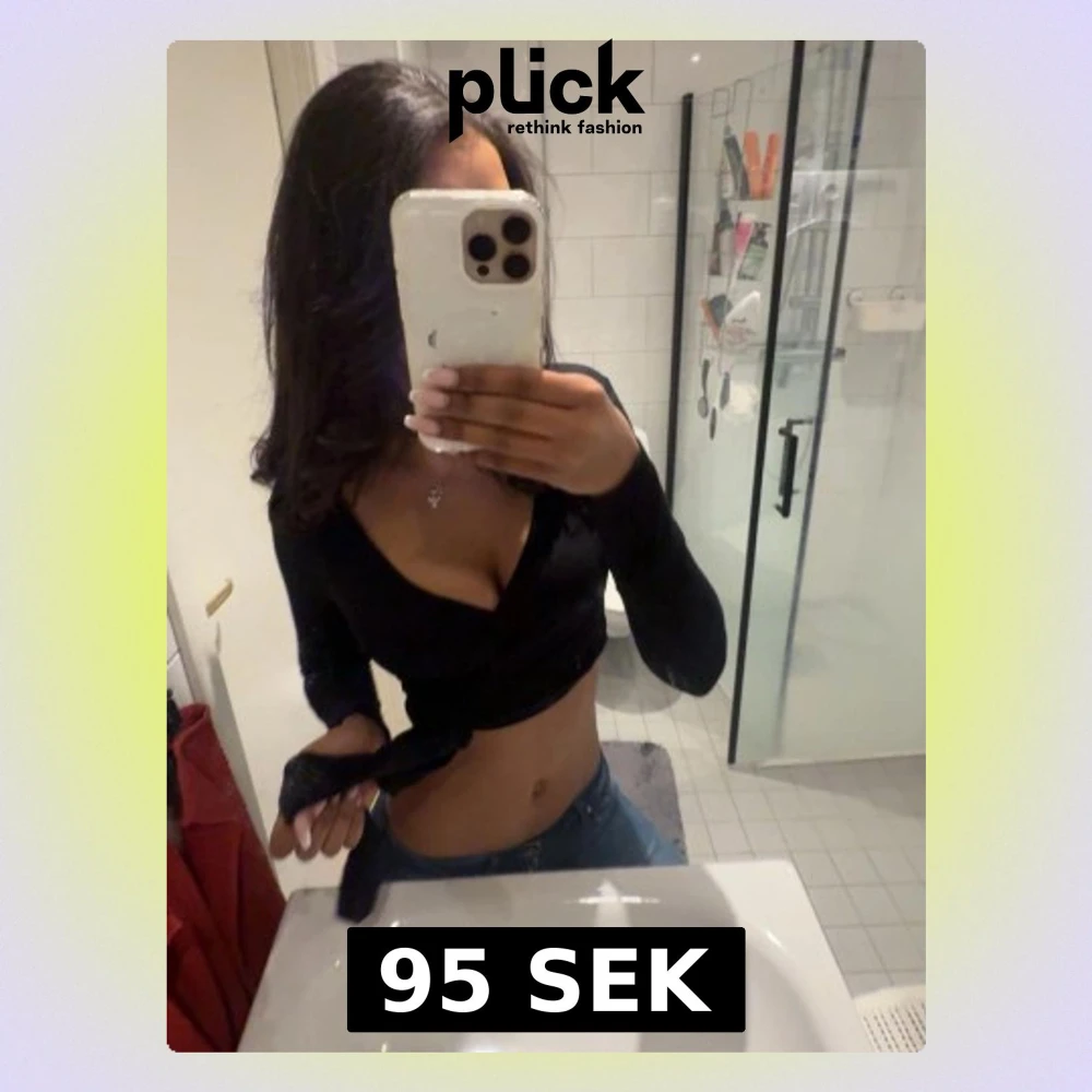 Säljer en svart omlottopp med lång ärm och djup v-ringning. Toppen har en croppad passform och knyt i sidan som ger en snygg siluett. Perfekt att styla med höga jeans eller kjol för en trendig look.🥰