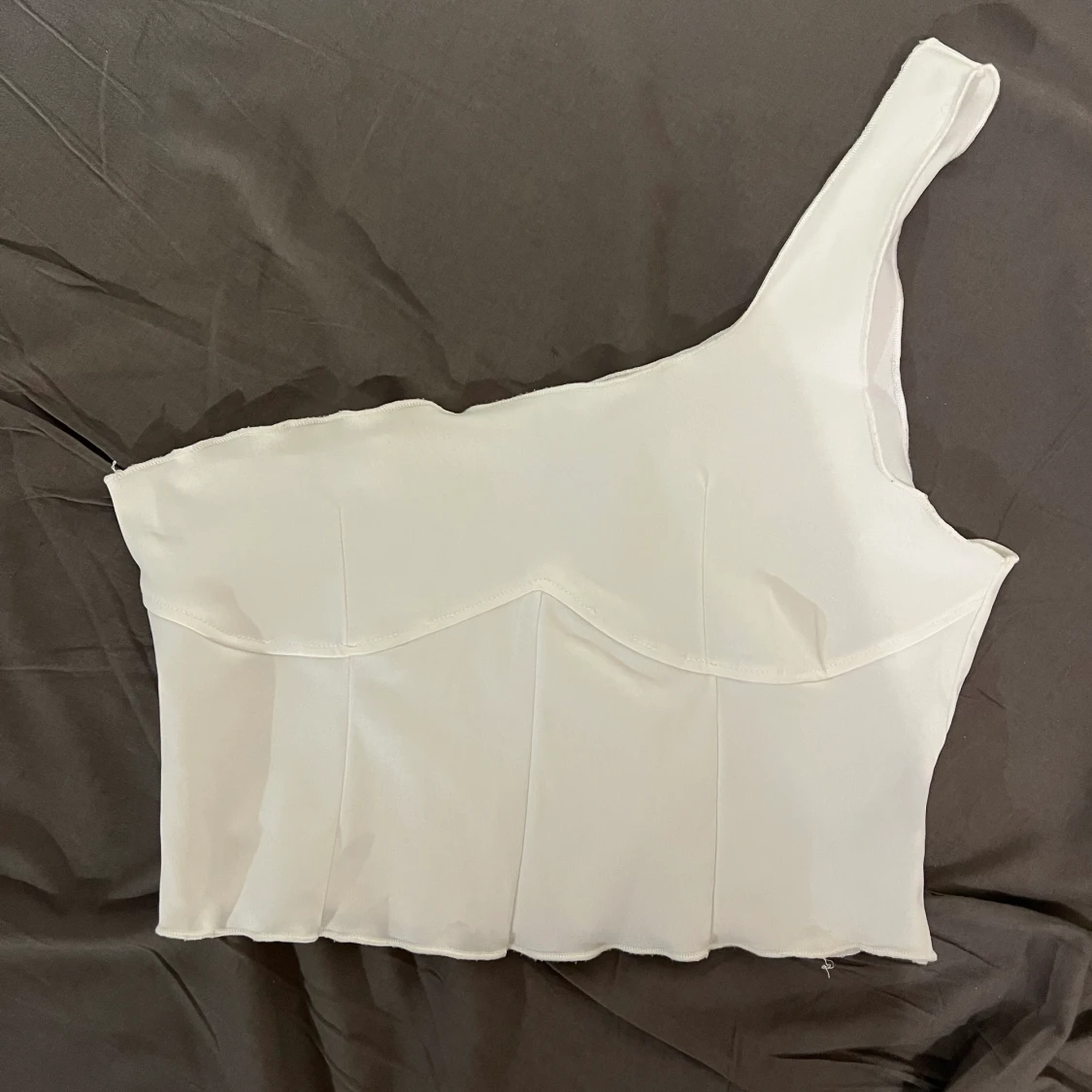 Vit one shoulder topp från shein i storlek S med fina detaljer vid brösten, använt endast 1 gång.💞