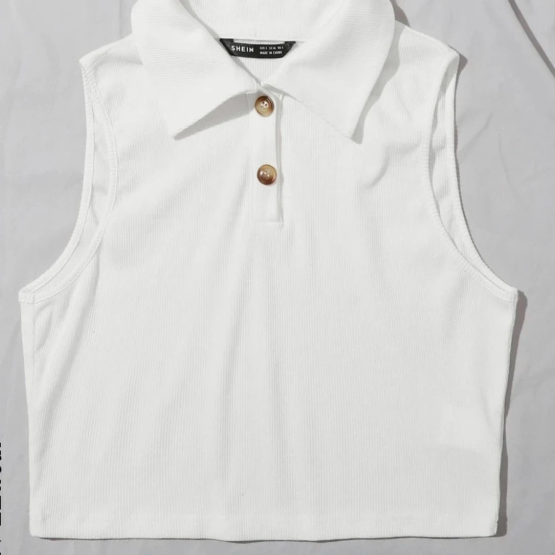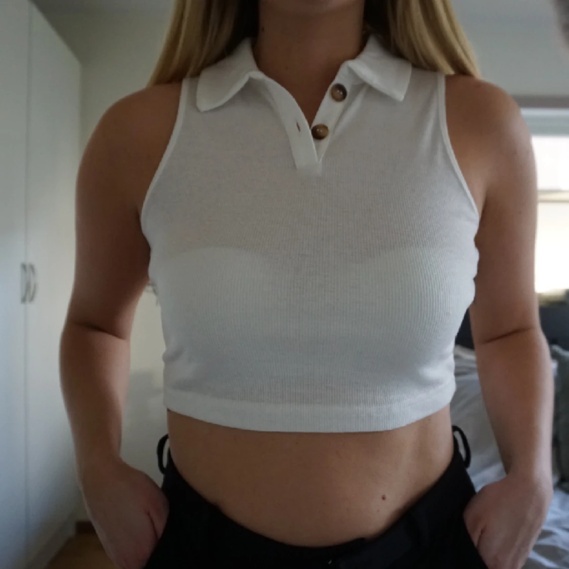 Vit croppad topp med krage. Storlek S. Endast använd ett fåtal gånger.
