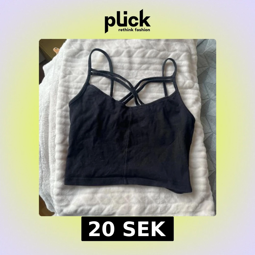 Säljer en svart croppad linnetopp med tunna axelband och snyggt korsade band framtill. Toppen är enkel men har en cool detalj med dubbla band över axlarna. Perfekt att styla med jeans eller kjol för en trendig look.