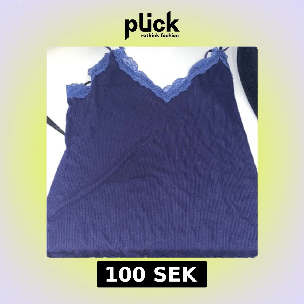 Snygg mörkblå ribbad linnetopp från Amisu med spetsdetaljer vid halsringningen. Perfekt för en stilren look. 💙