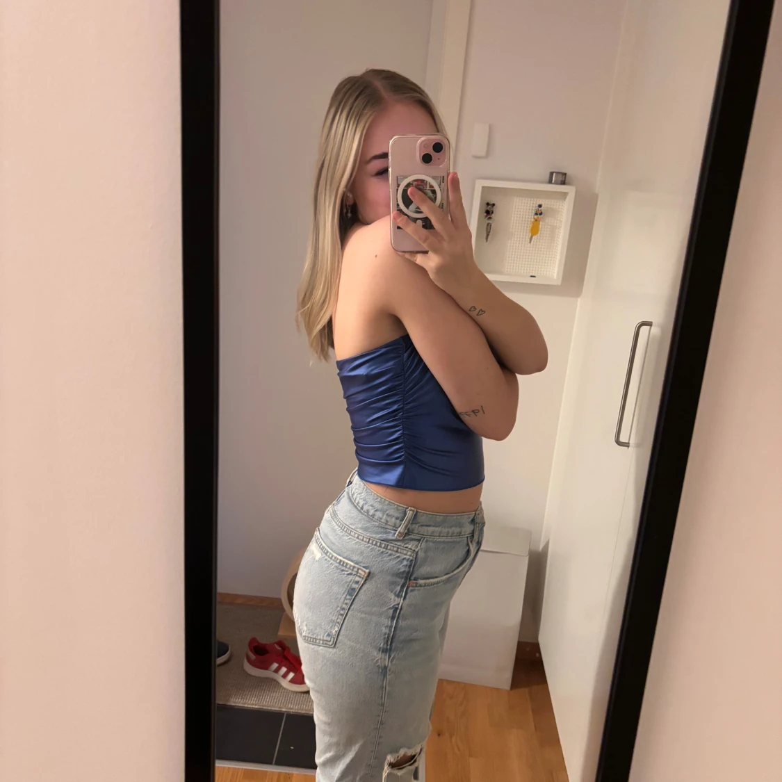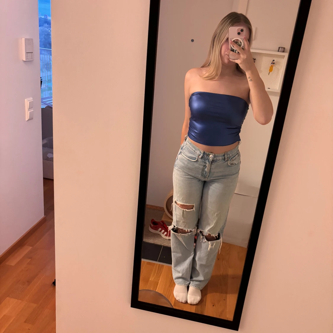 Säjer min blåa tubtopp som jag hade förra halloween. Kunde röra mig i den utan att vara rädd för att den skulle åka ner🫶🏻