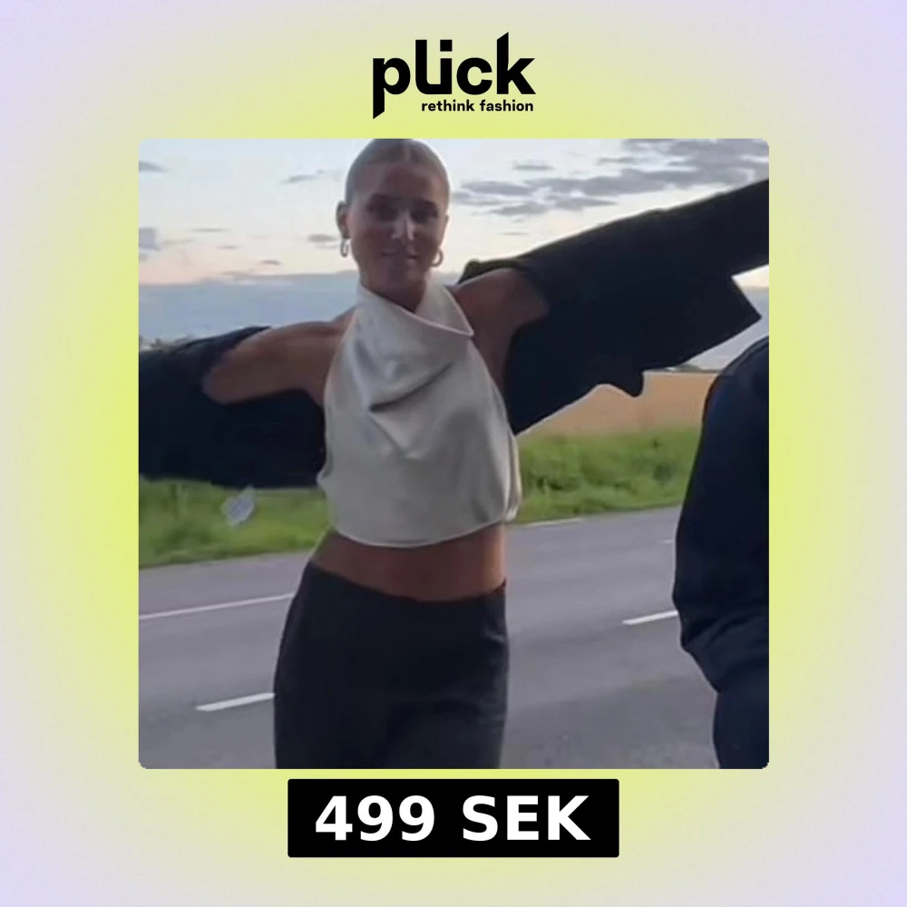 Älskar denna ”beige-vita” glansiga top. Djup i ryggen och passar båda XS o S