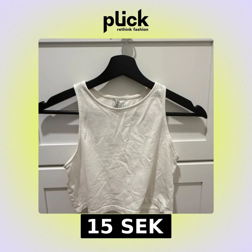 Säljer en enkel och fräsch vit croppad linnetopp från H&M Divided. Toppen är ärmlös med rund halsringning och tillverkad i mjuk bomull. Perfekt att matcha med jeans eller kjol för en clean look.