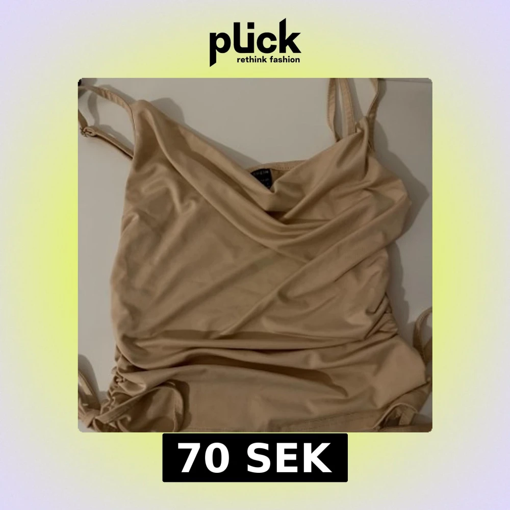 Snygg beige linne från SHEIN med omlott-detalj och tunna axelband. Linnet har en draperad front och justerbara band i sidorna för en trendig look. Perfekt för dig som gillar stilrena och enkla plagg med en twist.