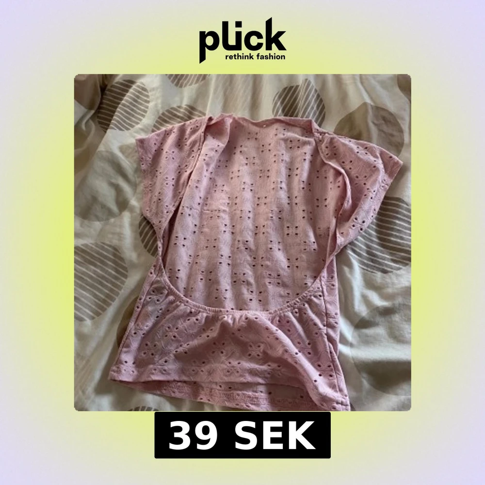 Säljer en ljusrosa blus med korta ärmar och broderat hålmönster över hela toppen. Modellen är loose fit och har en söt, feminin vibe med små broderade detaljer. Perfekt för dig som gillar romantiska och luftiga plagg.