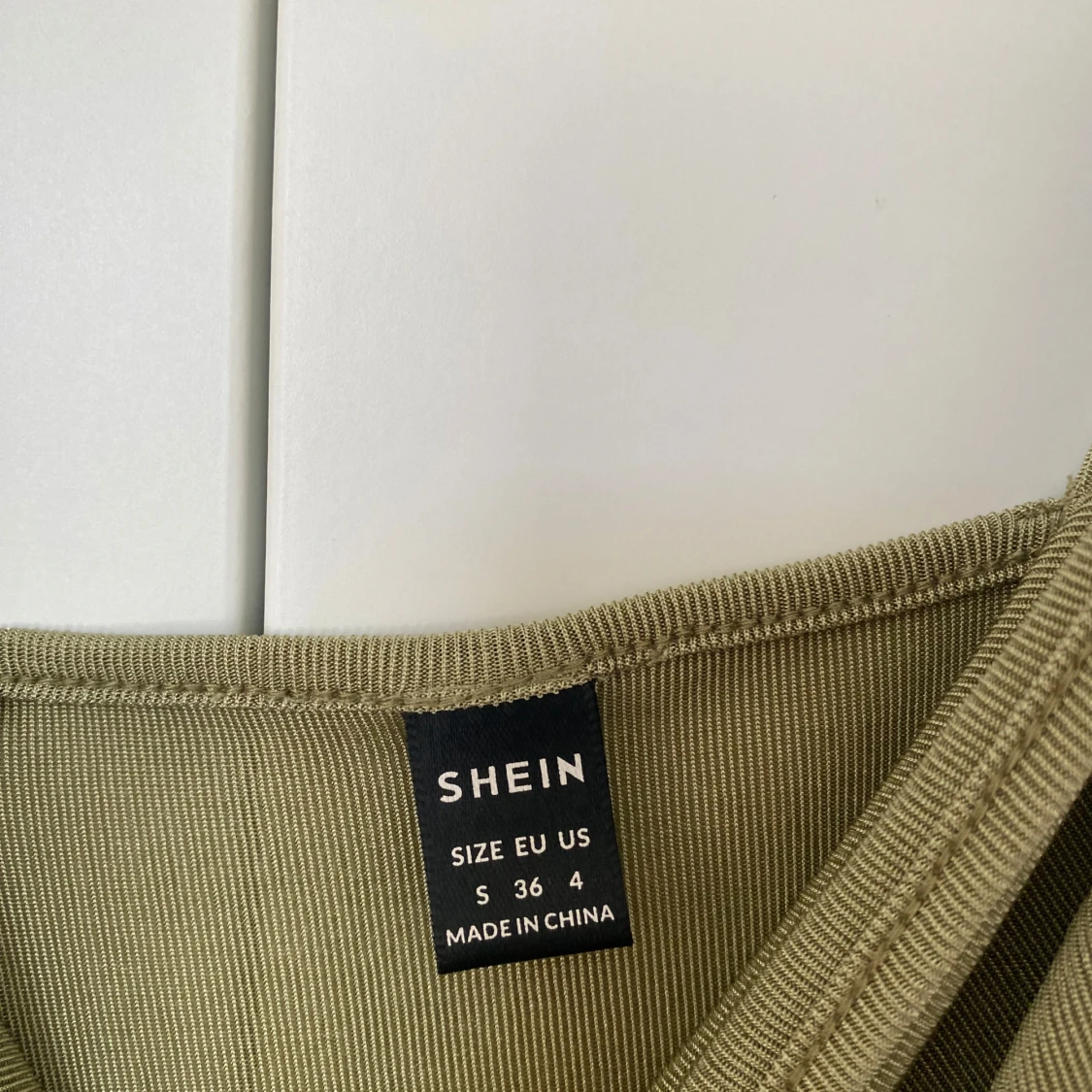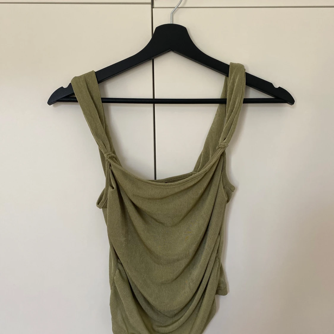 Topp från SHEIN i storlek S. Toppen har breda axelband med ett draperat fall framtill