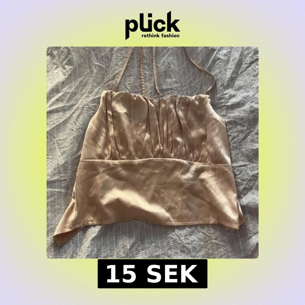 Snygg linnetopp i glansig champagnefärgad satin med tunna axelband och lätt rynkade detaljer upptill. Perfekt för dig som gillar en stilren och chic look. Croppad modell som ger en trendig vibe.strl s. Från SHEIN. Aldrig använd. Går att pruta