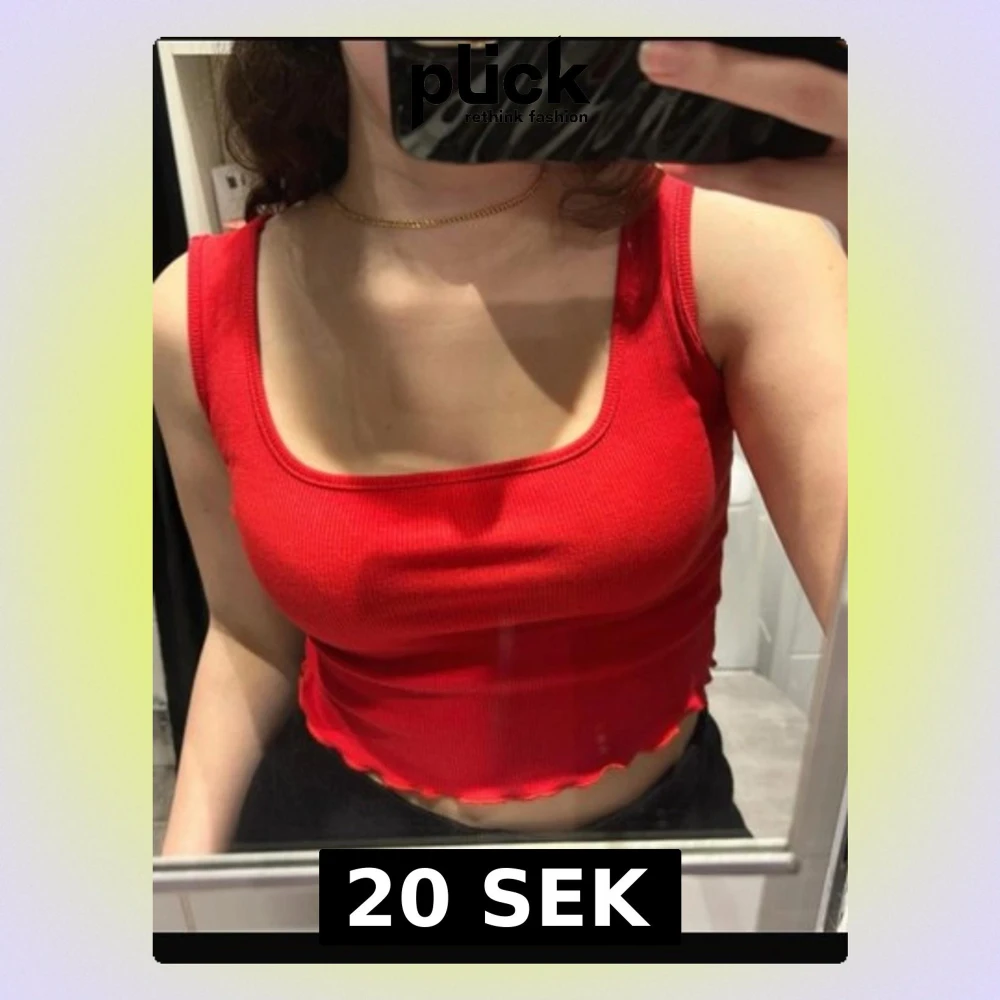Säljer en röd croppad linnetopp med breda axelband. Bortklippt lapp men toppen är i storlek S från SHEIN