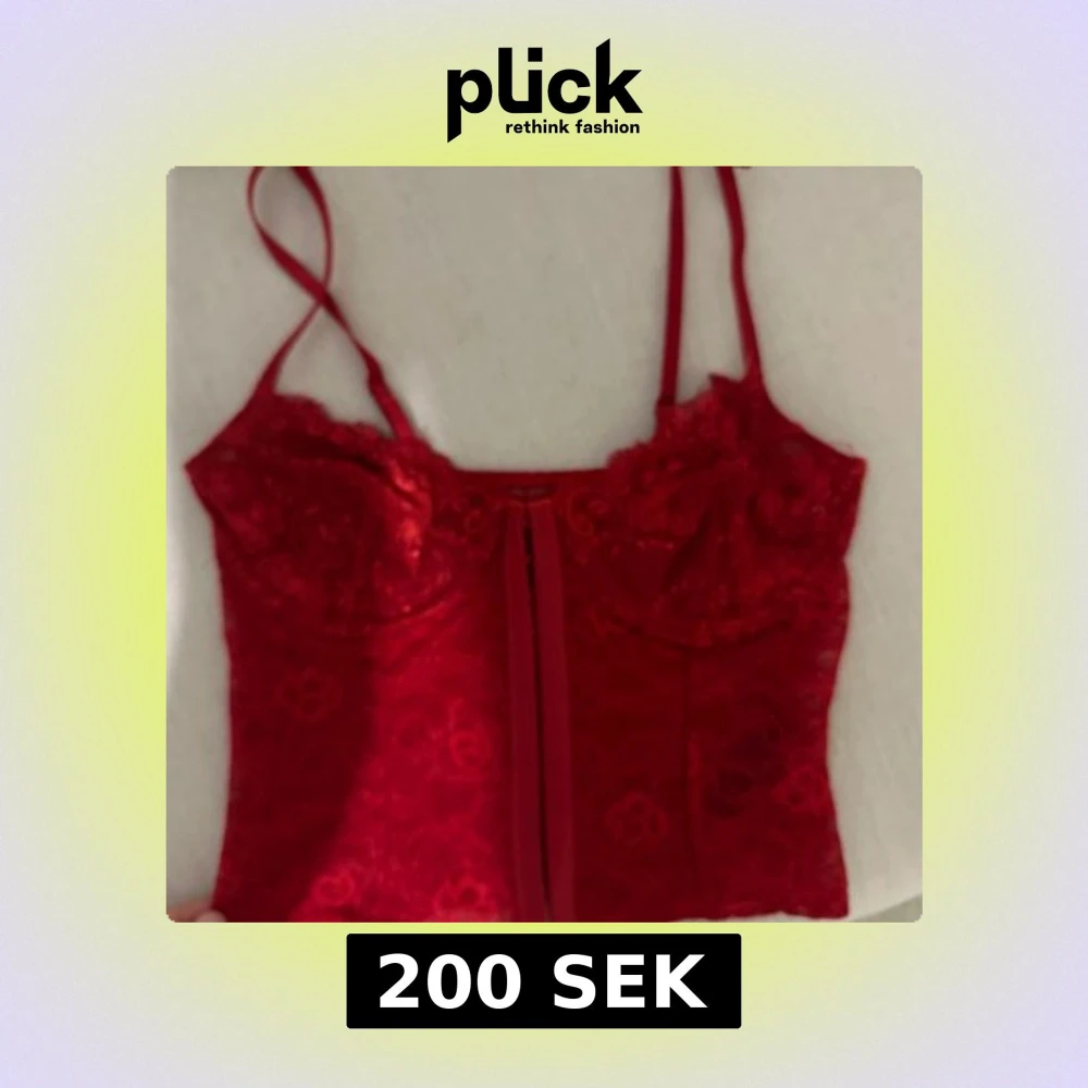 Snygg röd korsett med tunna axelband och vackra spetsdetaljer. Toppen har en feminin design med blommönster i spetsen och markerade kupor. Perfekt för dig som vill ha en statement topp till din outfit.