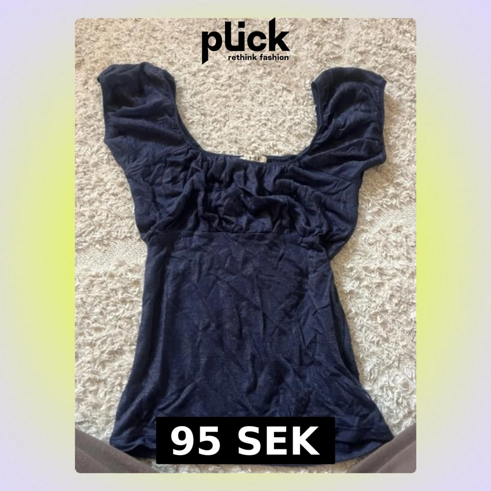 Trendig mörkblå topp med bred urringning och puffiga korta ärmar. Tunn och mjuk i materialet, perfekt för att styla med jeans eller kjol. Enkel men ändå snygg design❣️