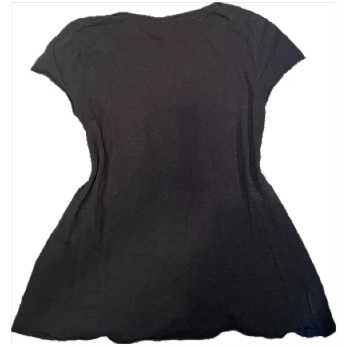 Svart topp med v-ringning och korta ärmar.