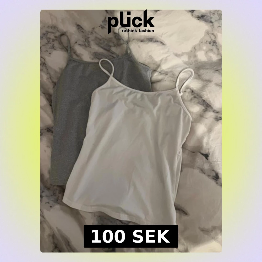 Säljer två enkla linnetoppar med tunna axelband, en i vitt och en i grått.