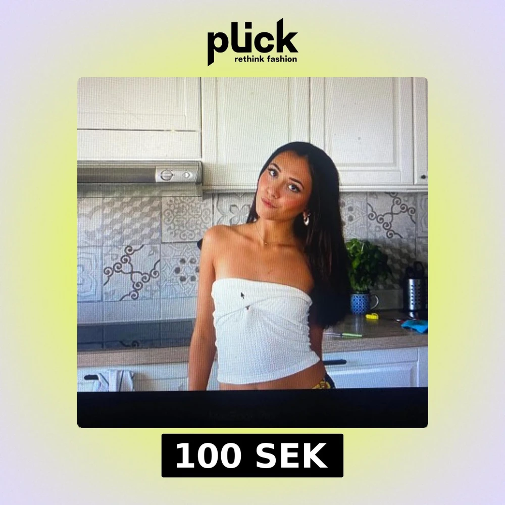 Snygg vit axelbandslös tubtopp som är perfekt för sommardagar. Toppen har en enkel och stilren design med en liten knutdetalj framtill. Passar utmärkt till både kjol och byxor för en avslappnad look.