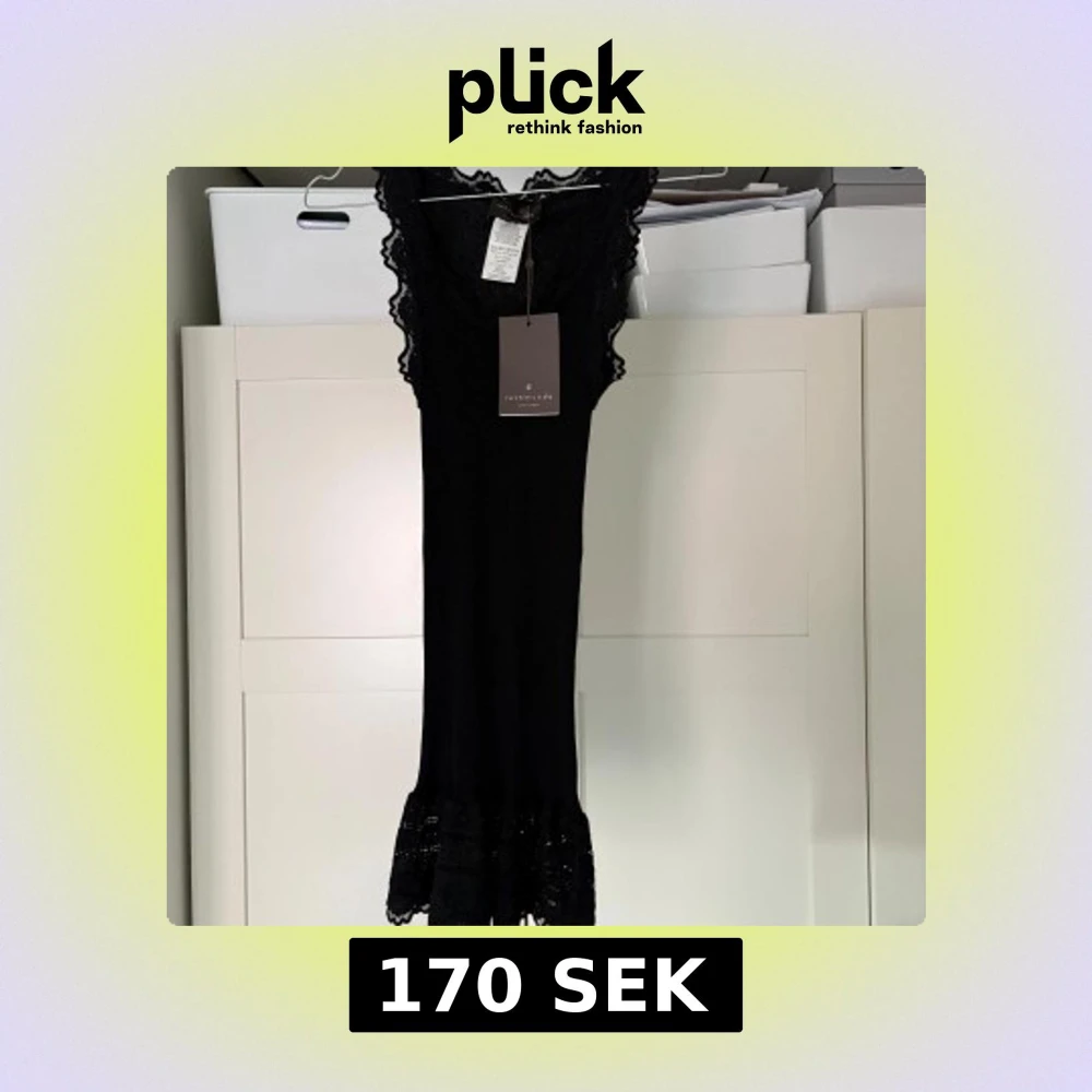 Nice svart ribbad topp/klänning med vackra spetsdetaljer. Tajt passform och volangkant nedtill. Perfekt för en stilfull look. När kag skriver topp/klänning så menar jag att det kan användas till båda. Eller nu kan inte jag använda den som en klänning längre för den är för kort men för rvå år sedan hjorde jag det