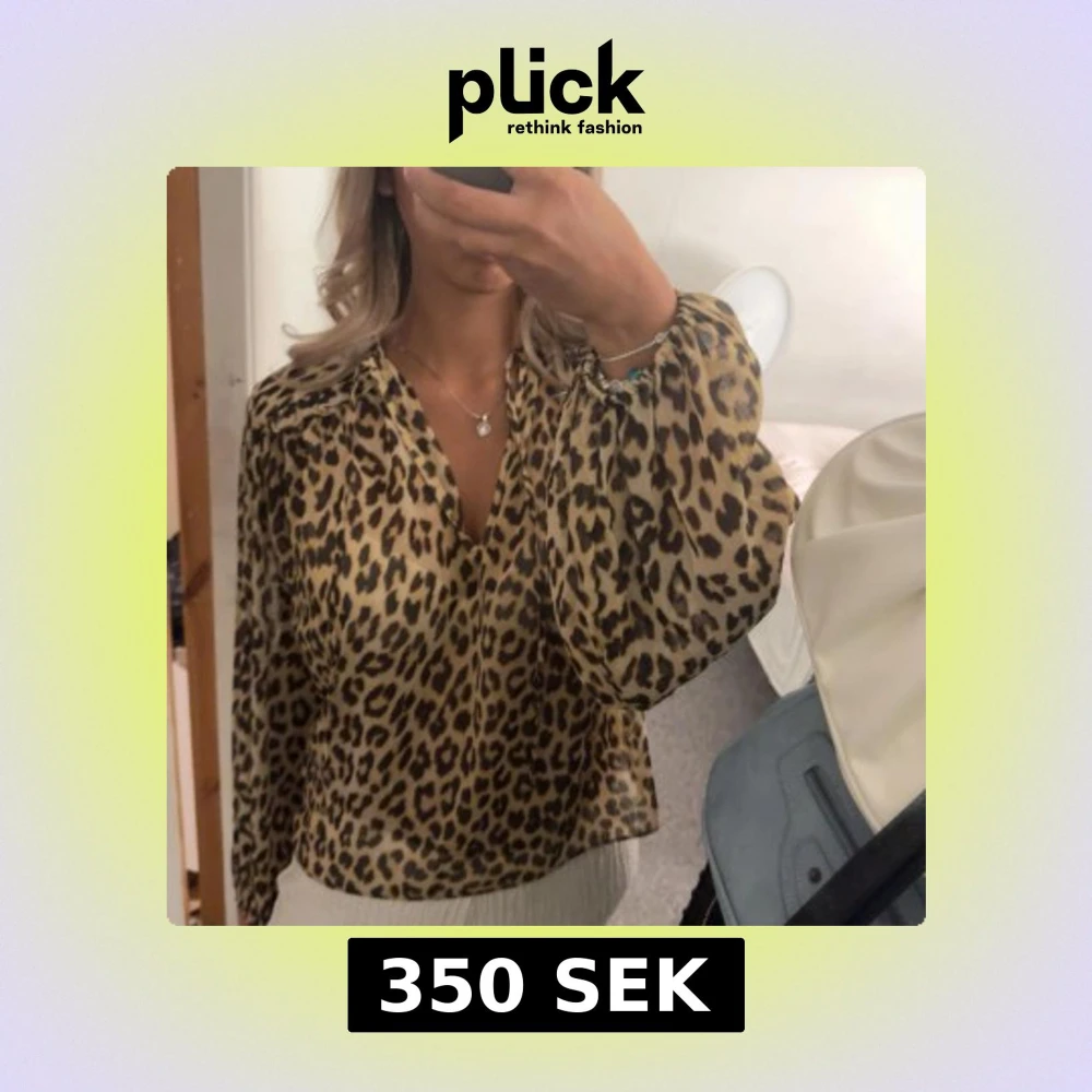 Säljer en snygg blus med leopardmönster i beige och svart. Blusen har v-ringad hals och långa, luftiga ärmar med resår vid handleden finns två band så man kan knyta om man inte vill ha de så urringat . Perfekt för dig som vill sticka ut med ett djuriskt print och skön passform.