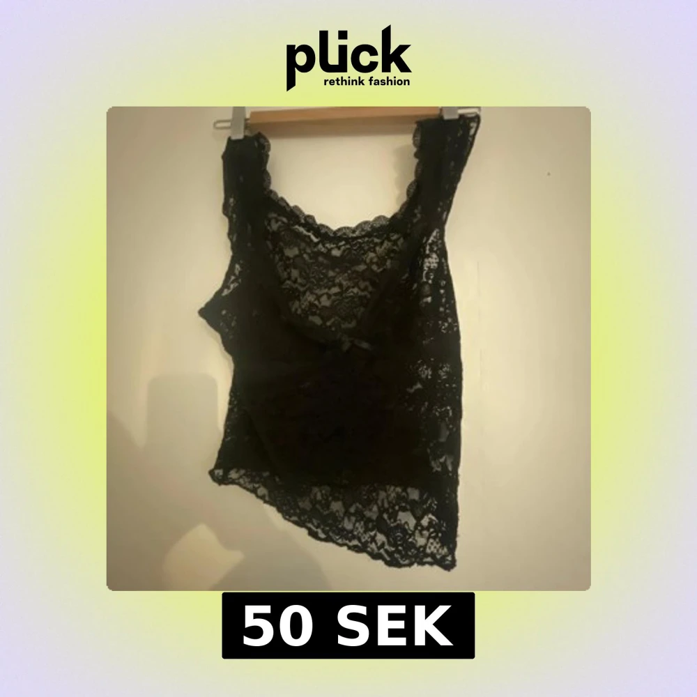 Säljer en helt oanvänd svart ärmlös linnetopp i genombruten spets med söt liten rosett framtill. Toppen har vacker blommig spets och en feminin, croppad passform. Perfekt att styla lager på lager eller som statement-piece till jeans eller kjol.