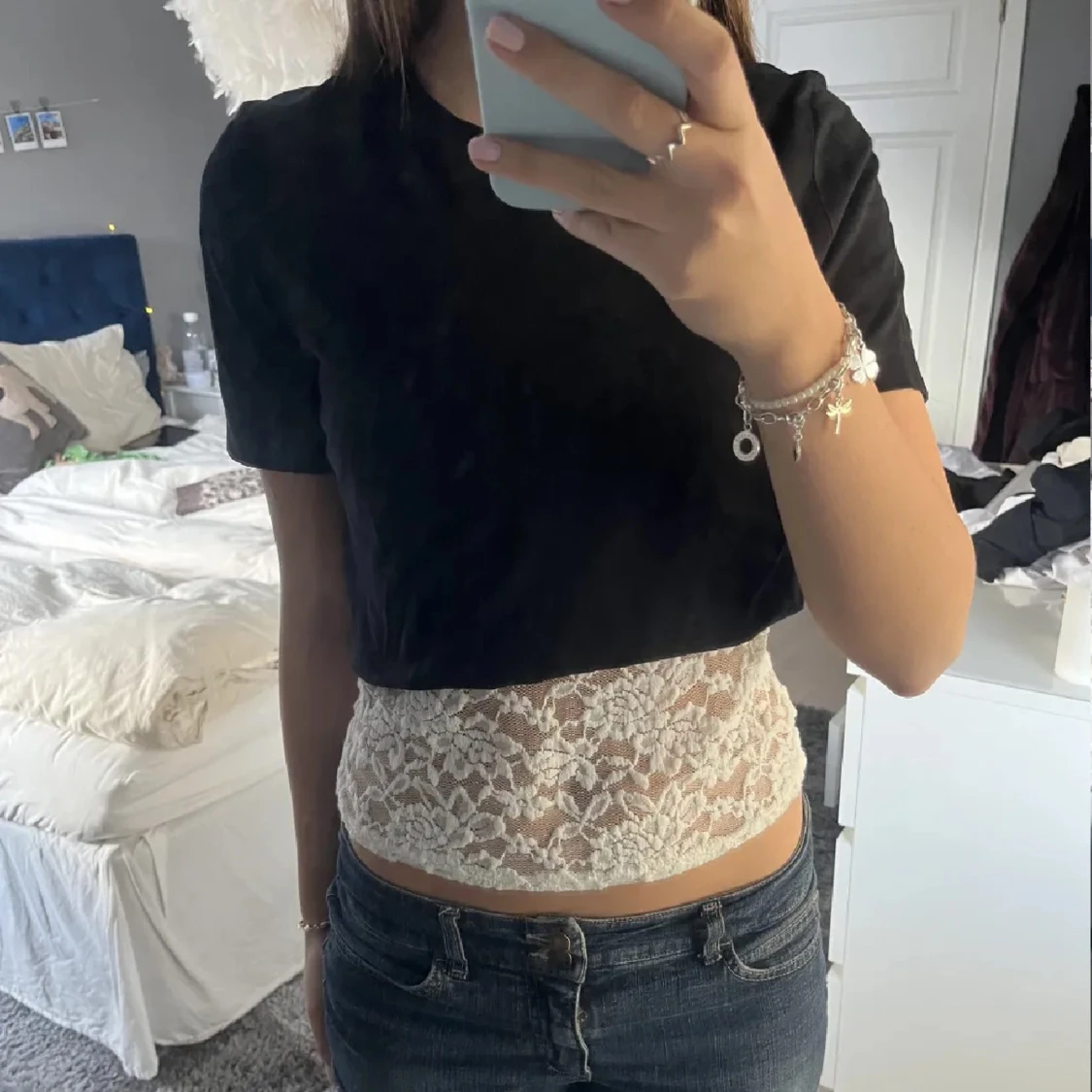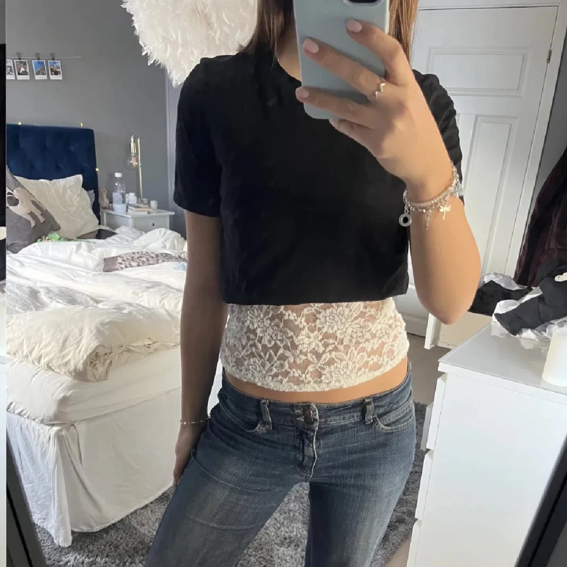 Säljer den här superfina vita spetstoppen som passar perfekt med styling under andra plagg. Skriv för fler bilder🫶🏻
