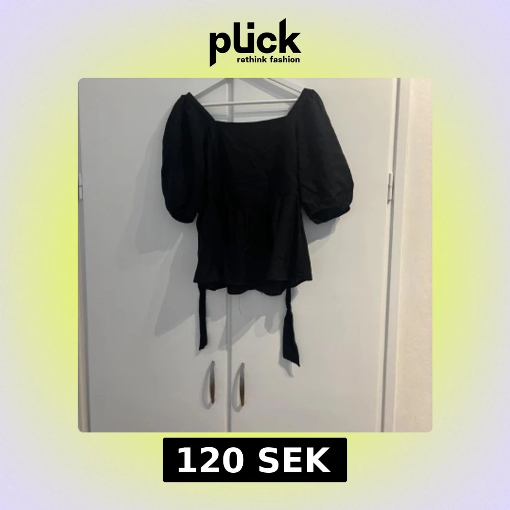 Supersnygg svart blus från AWARE med puffiga korta ärmar och knytband i ryggen. Använd vid ett tillfälle i storlek S