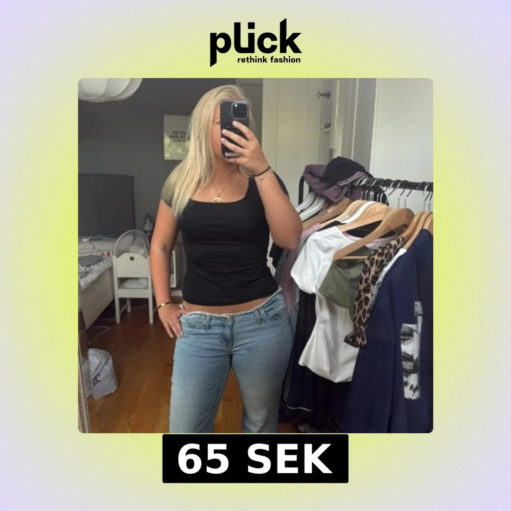 Svart, figurnära topp från SHEIN i storlek S (EU 36). Toppen har en enkel och stilren design med rundad halsringning och ärmlös passform.