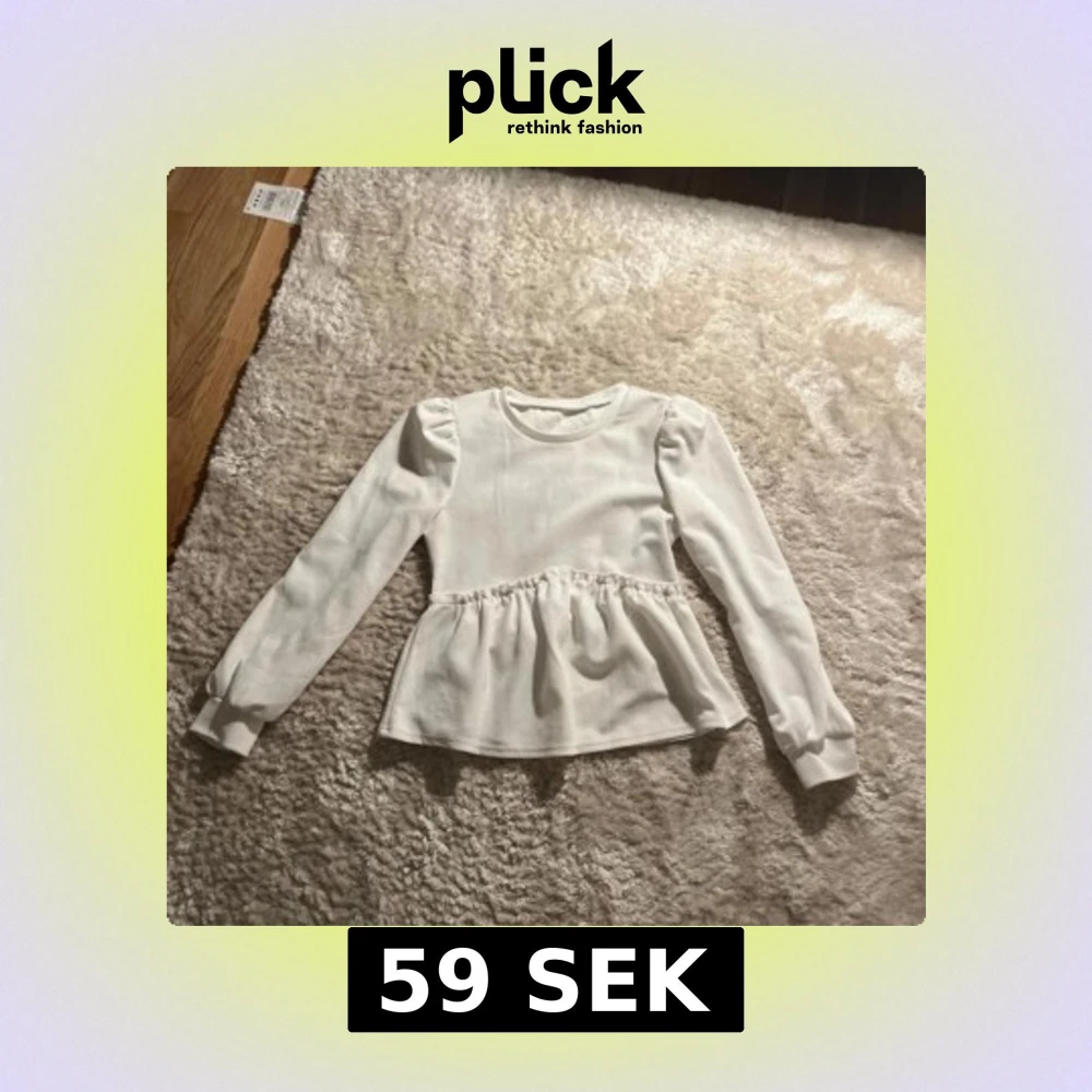 Supersöt vit blus med långa puffärmar och volang nedtill. Rund halsringning och lätt rynkad midja ger en feminin siluett. Perfekt att styla med jeans eller kjol för en trendig look.