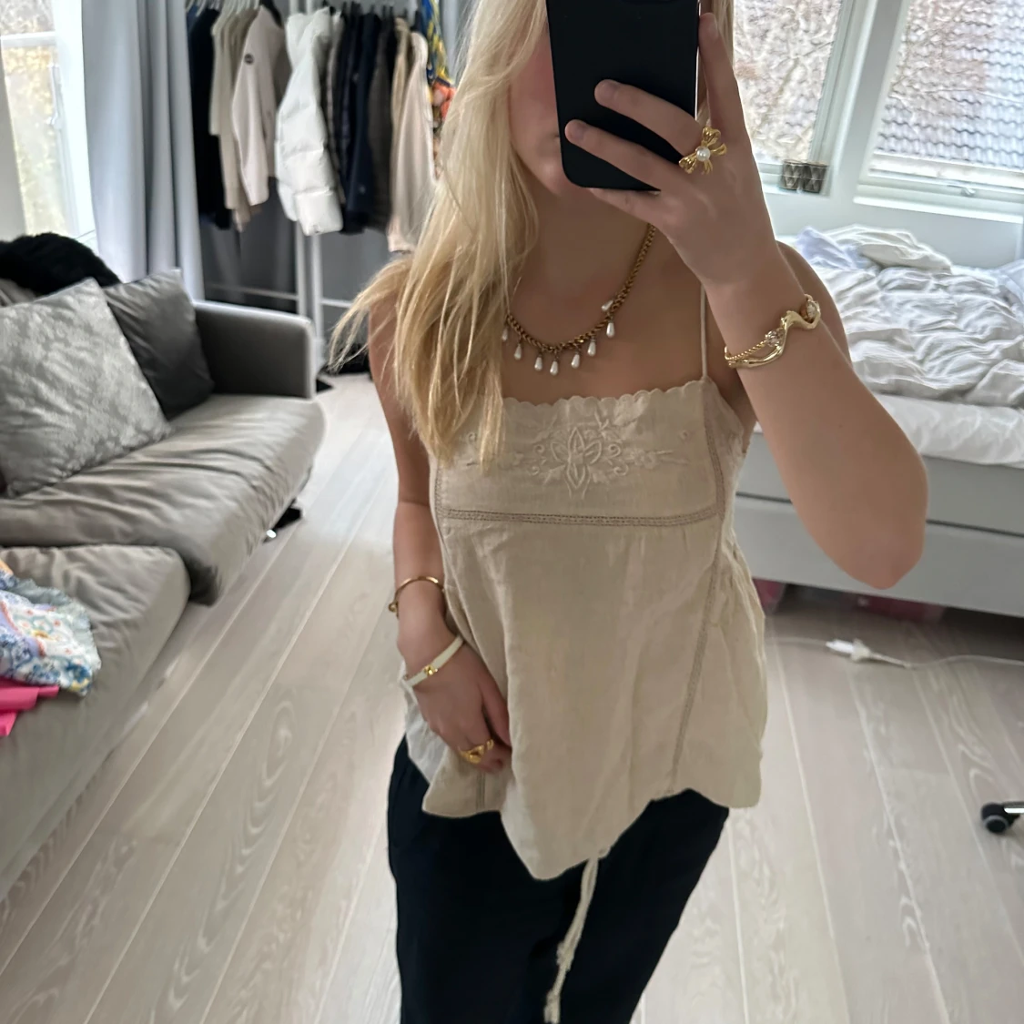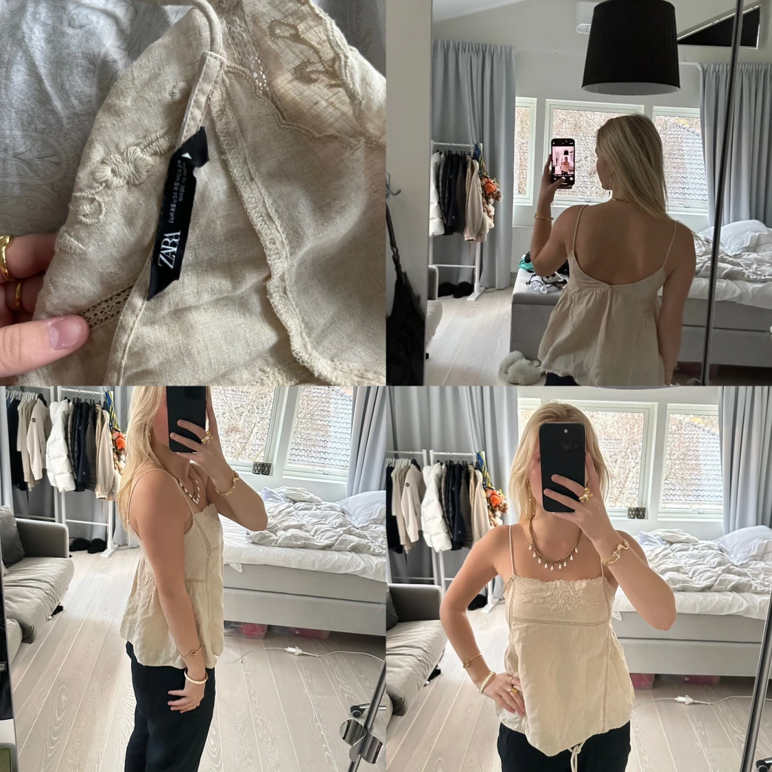 Superfint beiget linne från Zara med broderi. Köpt för 329kr. Storlek XS