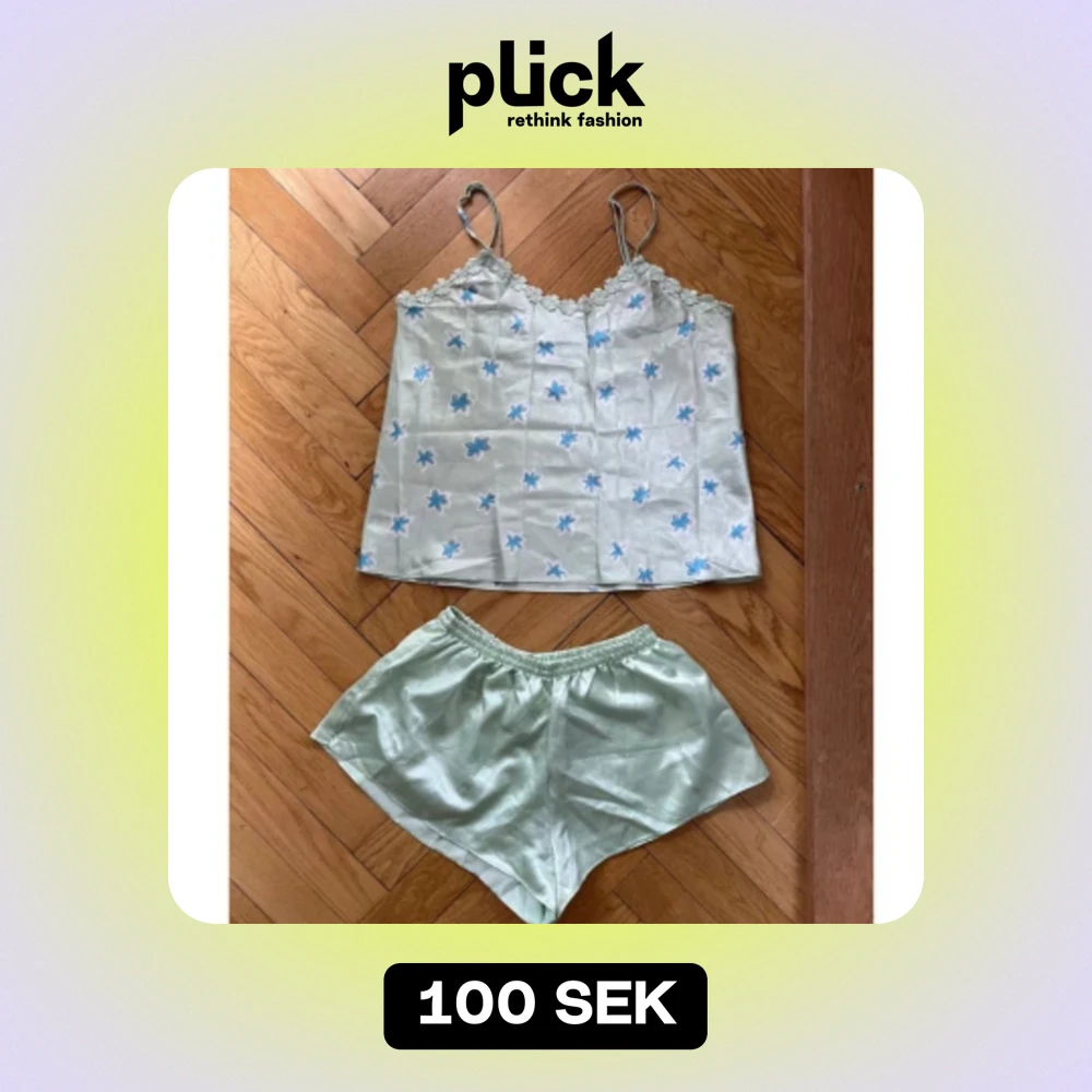 Superfint pyjamasset från Gioni Feroti. Storlek M men skulle säga att i alla fall shortsen sitter mer som S! Köpt second hand men näst intill oanvänt.
