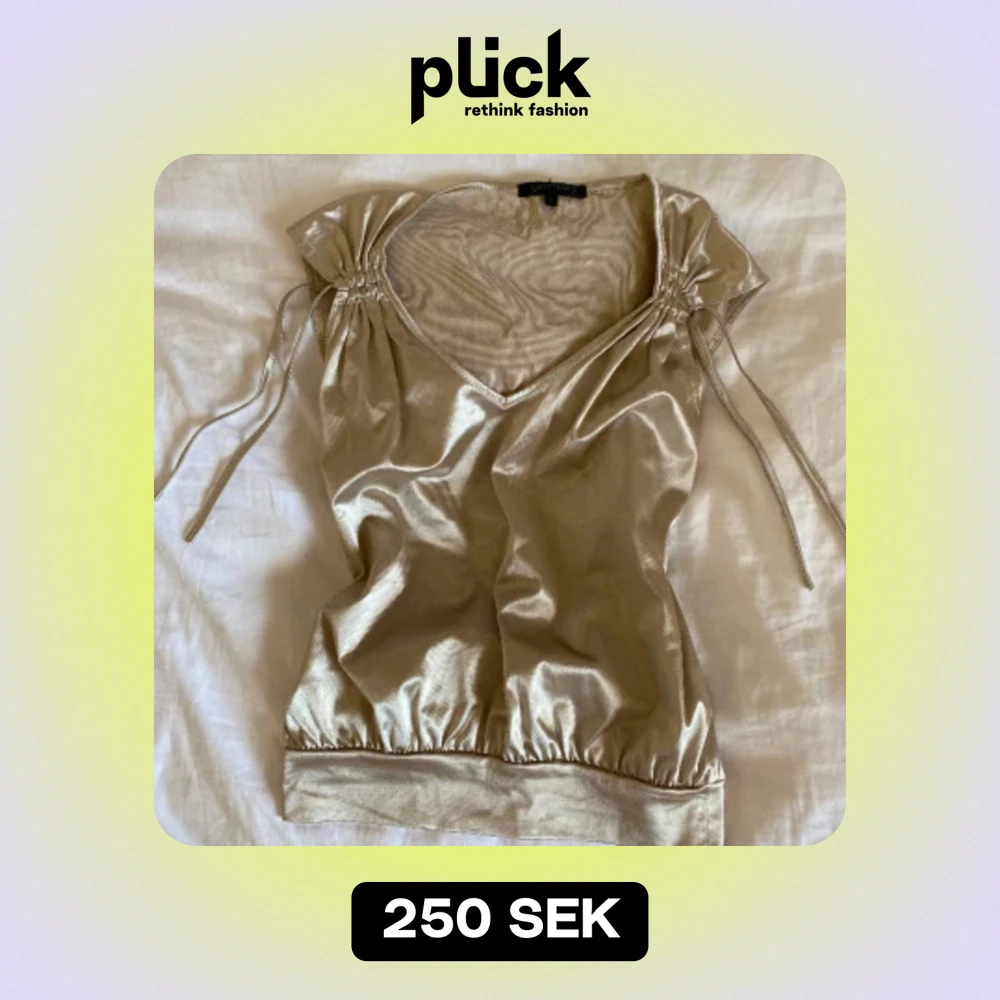 Guldig festtopp i storlek S frĂ„n Saint Tropezđ Plagget har ett pyttelitet hĂ„l pĂ„ baksidan vid lappen (syns pĂ„ bild 3), men det mĂ€rks inte alls nĂ€r man har pĂ„ sig denđ OBS: Plick ger toppen en konstig textur pĂ„ bilderna, men den ser inte ut sĂ„ irl!!