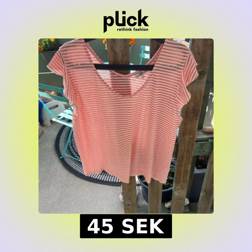 Säljer en luftig och somrig linnetopp från Hampton republic med rosa och vita ränder. Toppen har v-ringning och korta ärmar med lätt volang. Perfekt för varma dagar och enkel att matcha med jeans eller shorts.