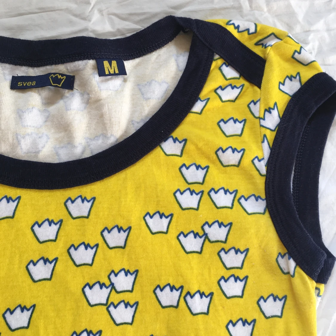 Unik vintage kortärmad topp från Svea med mörkblå detaljer på!
