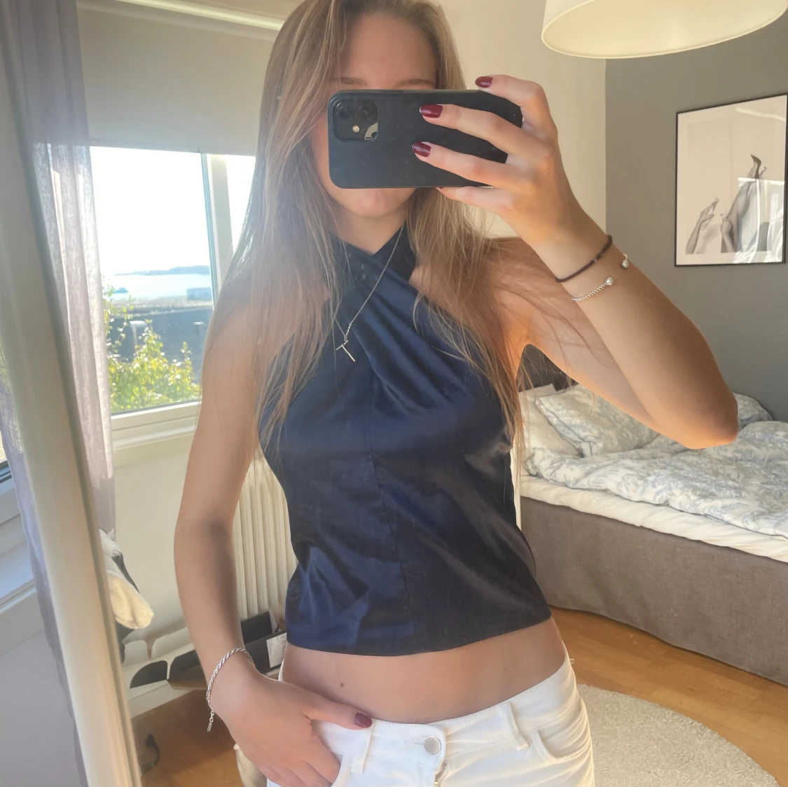 Snygg halterneck topp i satin som man knyter bak i nacken❤️