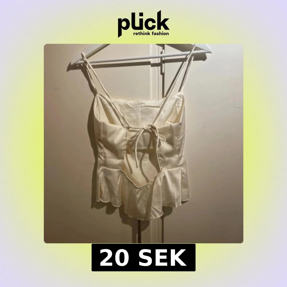 Säljer ett elegant satinlinne med smala axelband och volangdetalj nedtill. Toppen har en öppen rygg med knytning för en stilren look. Perfekt för sommarens alla stunder, liten i storlek