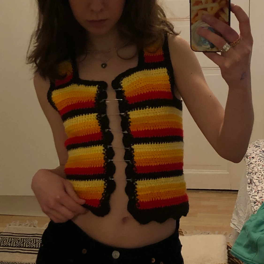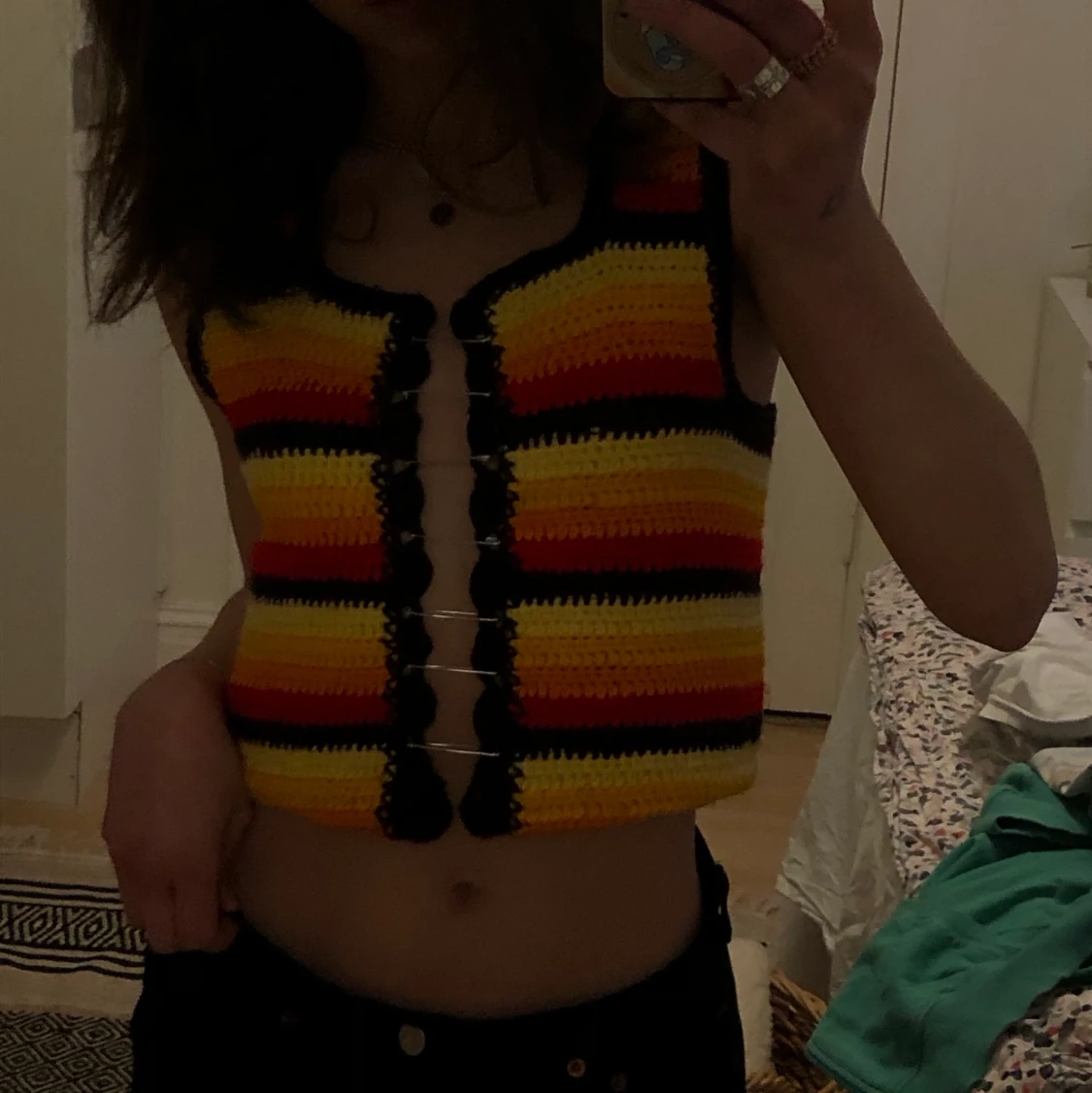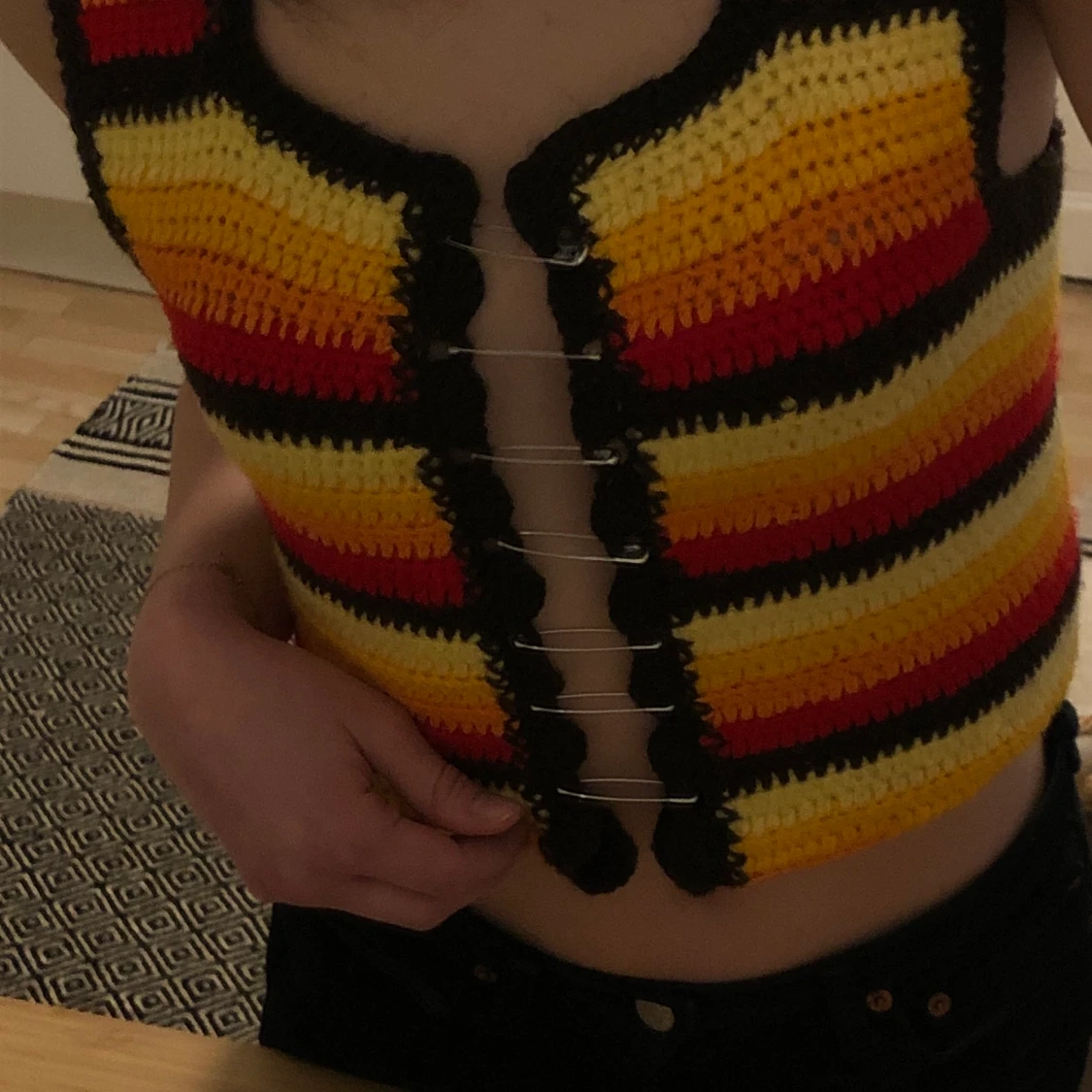 stickad topp, med säkerhetsnålar i mitten som jag fixat själv🥰 superfin till lite festligare tillfällen!