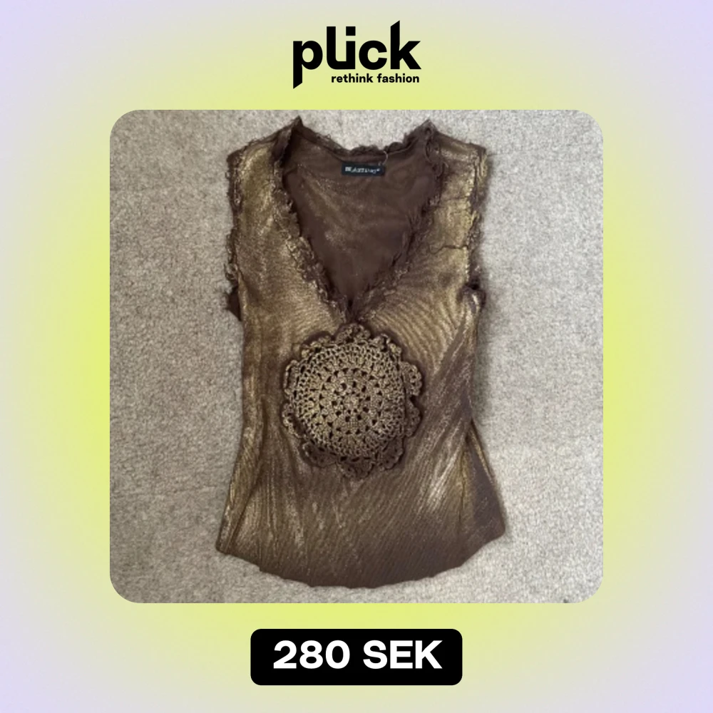 Supersnyggt och unikt linne med gulddetaljer som jag köpt second hand på Humana. Säljer då det ej kommer till användning. Skriv för fler bilder💕.