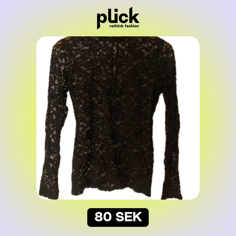 en långärmad spets tröja i mörkbrunt 🖤 har en kort ”krage” och två små knappar baktill. fint skick!