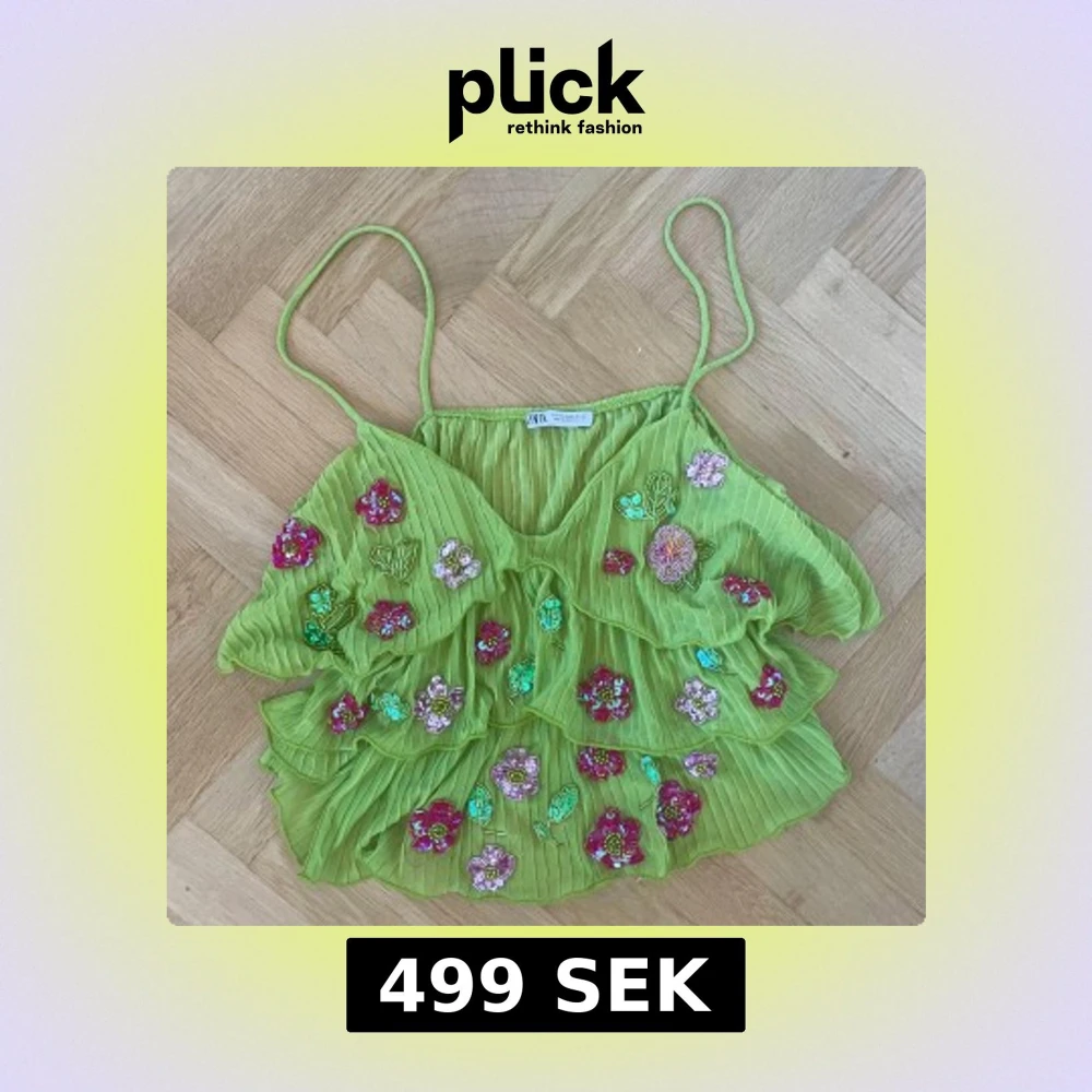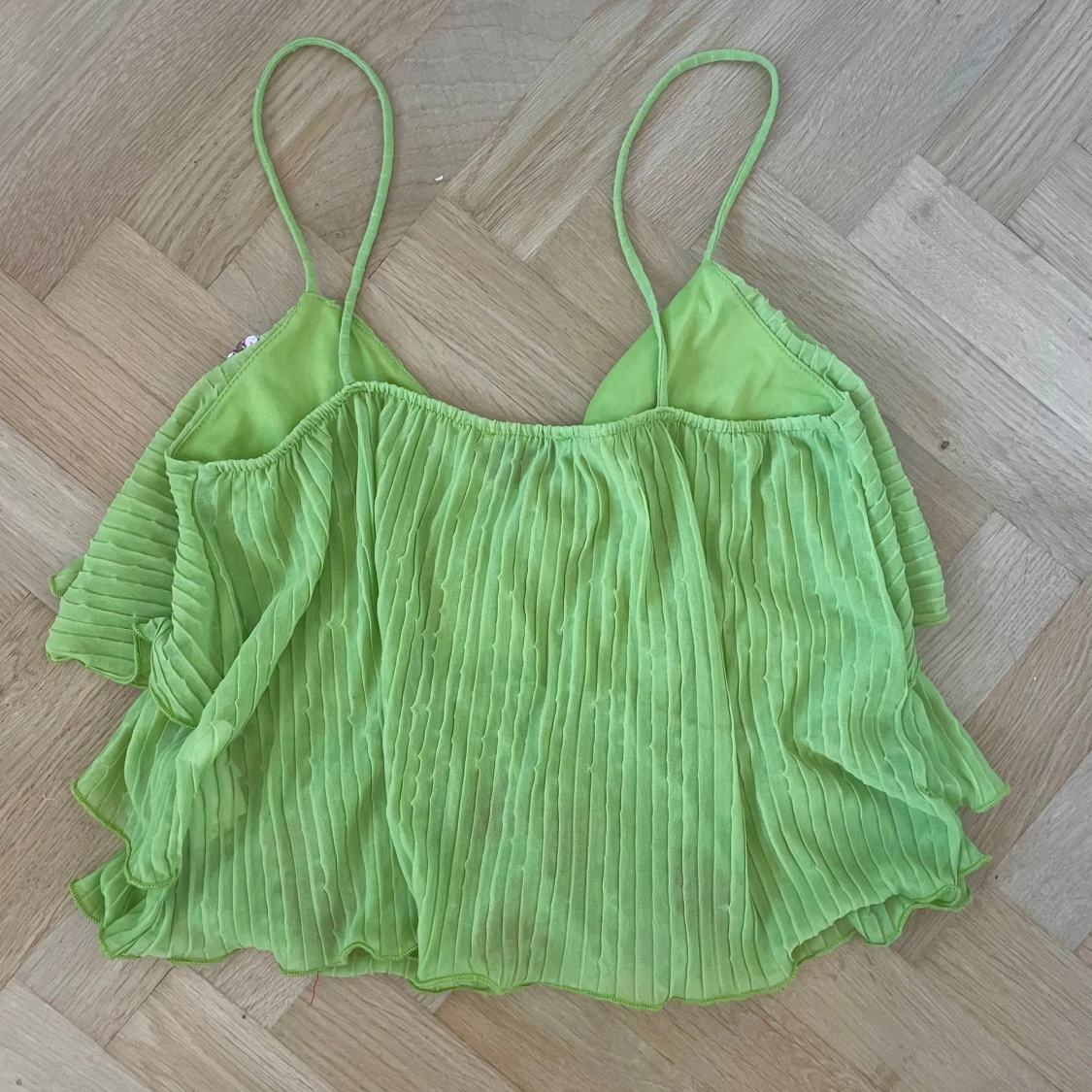 Superfin top från Zara med tunna axelband och plisserat tyg. Toppen har volanger och är dekorerad av mig 💗💛💖