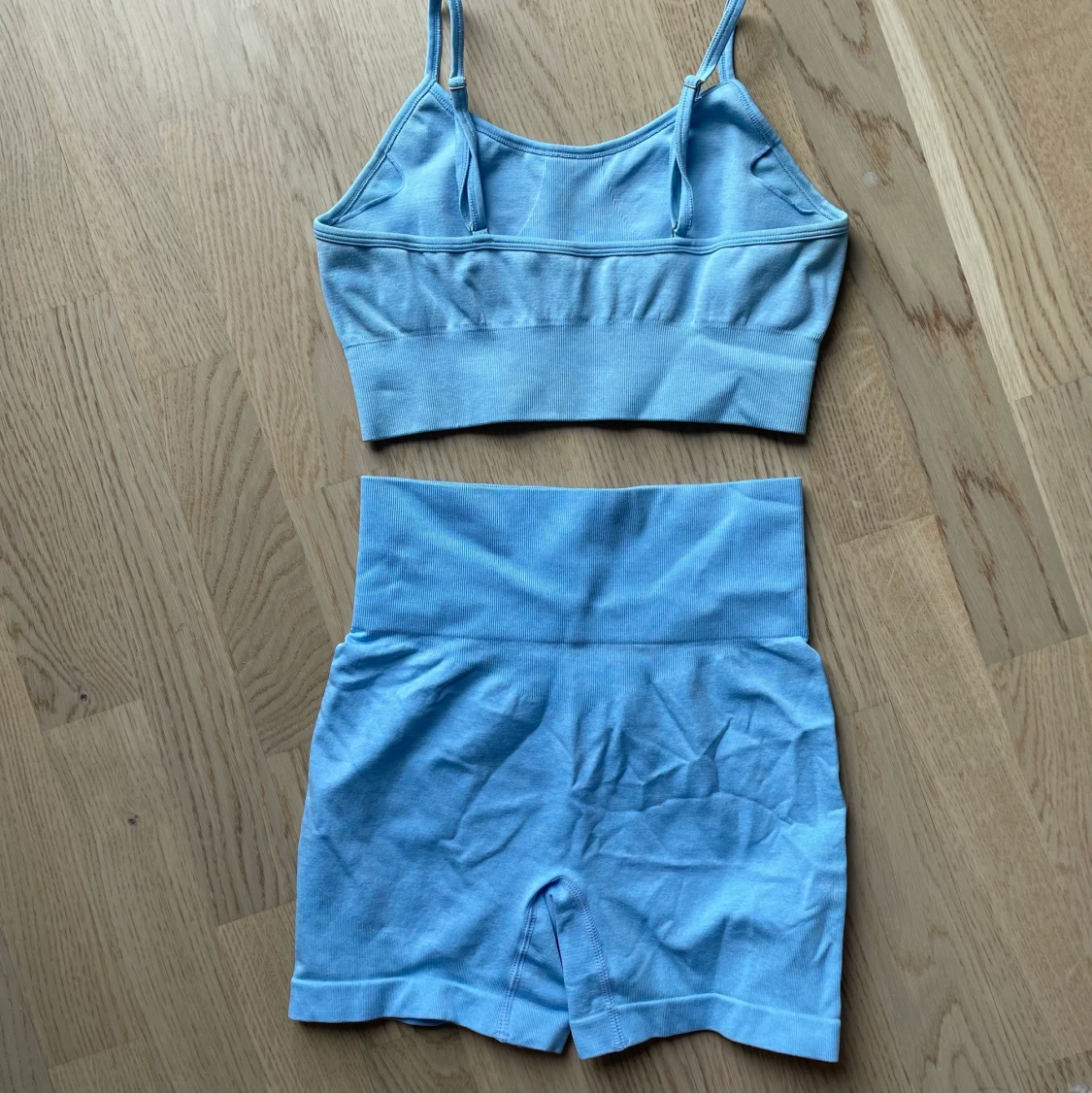 Jättefint babyblått seamless träningsset (shorts + sport-bh). Knappt använt. 170kr ink frakt ❤️🔥
