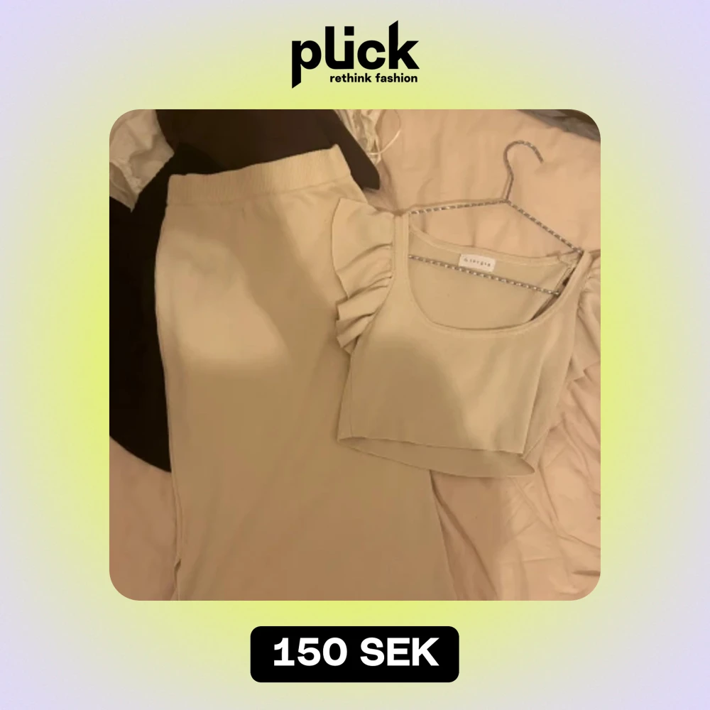 Jättefint nytt beige sett med kjol och topp med volangärmar. Strlk xs/s aldrig anvönd🎀