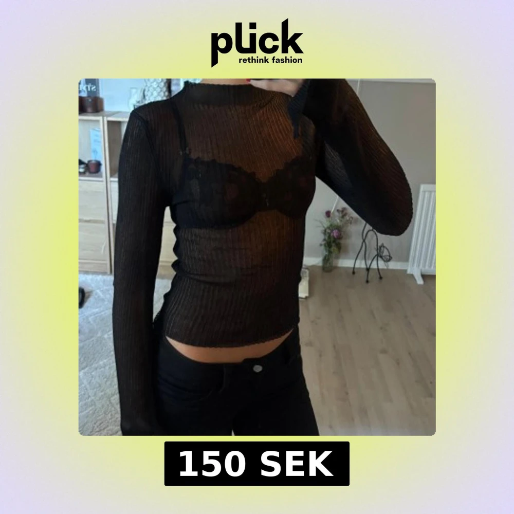 Genomskinlig svart ribbad långärmad topp i svart, storlek S. Perfekt till fest eller middag! Slits vid ärmarna Använd 1 gång, inget slitage eller fläckar
