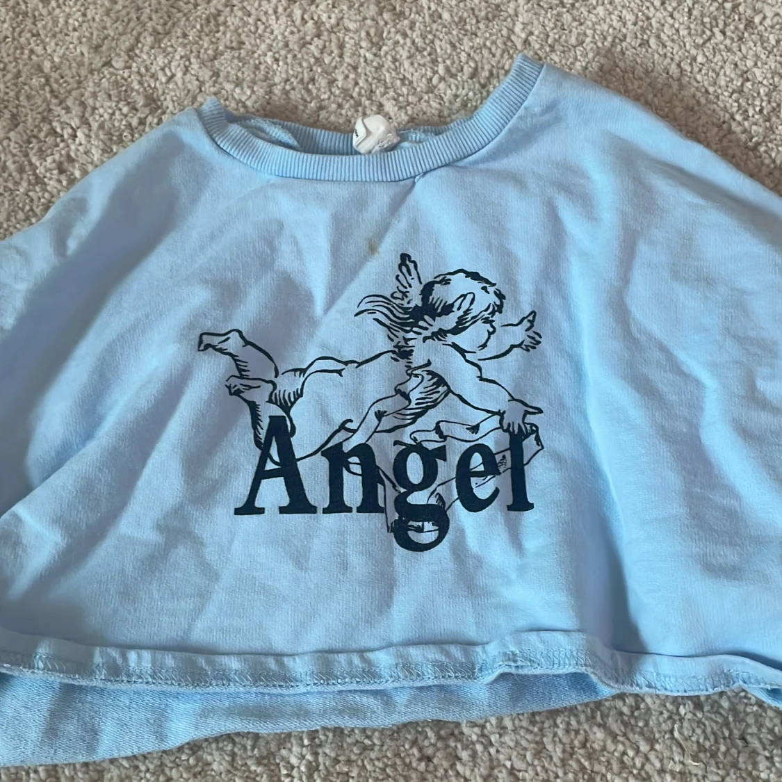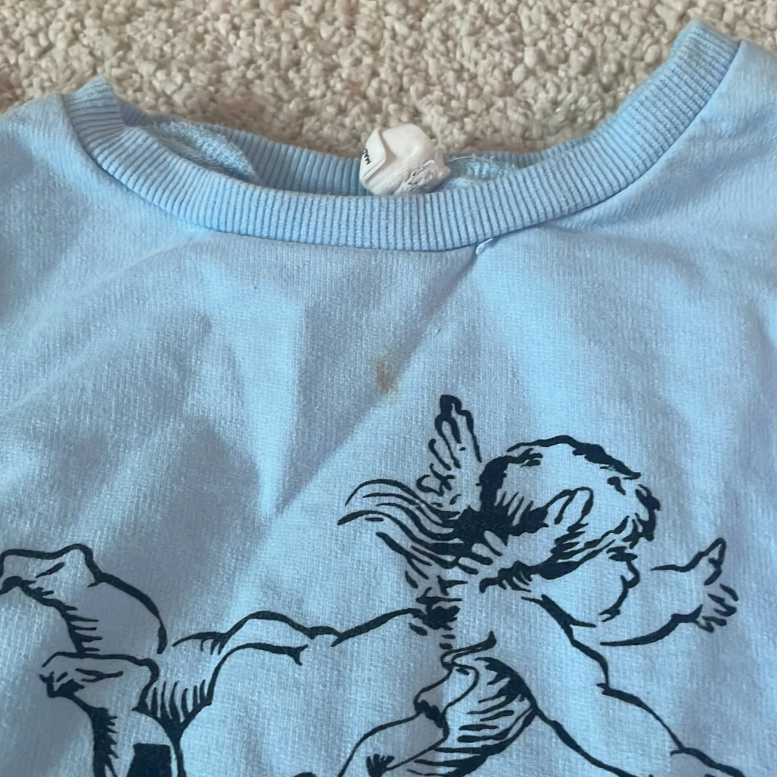 Ganska kort långärmad croptop Tvättas och stryks innan skick Bra skick Har en liten fläck men syns knappt