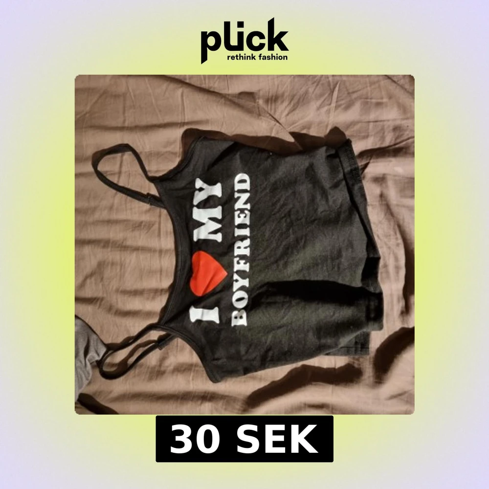Ett kortare linne frĂ„n SHEIN, knappt anvĂ€nt med en "I love my boyfriend" text đ«¶ söt att ha till lowrise jeans tycker jag men kan anvĂ€ndas till vad som helst âšïž