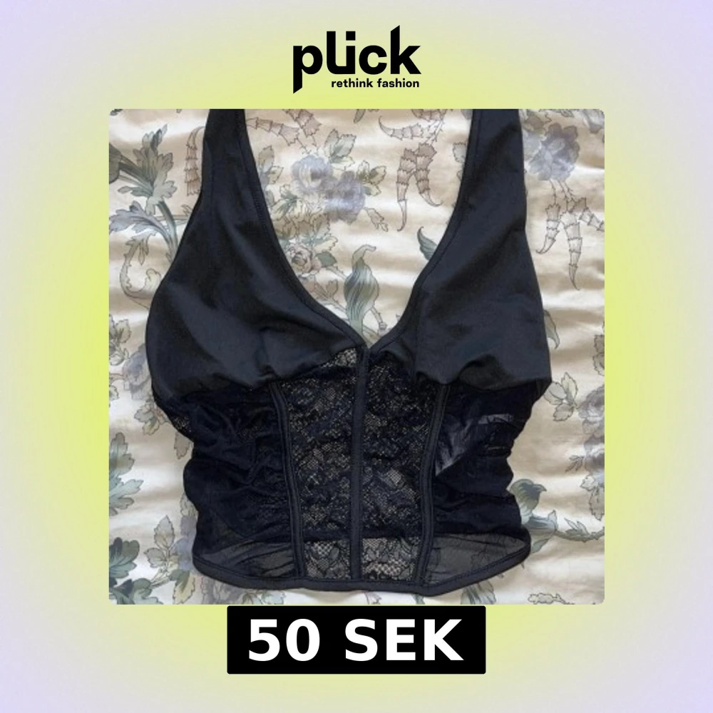 Snygg svart korsett liknande topp från Shein med spetsdetaljer och djup urringning.