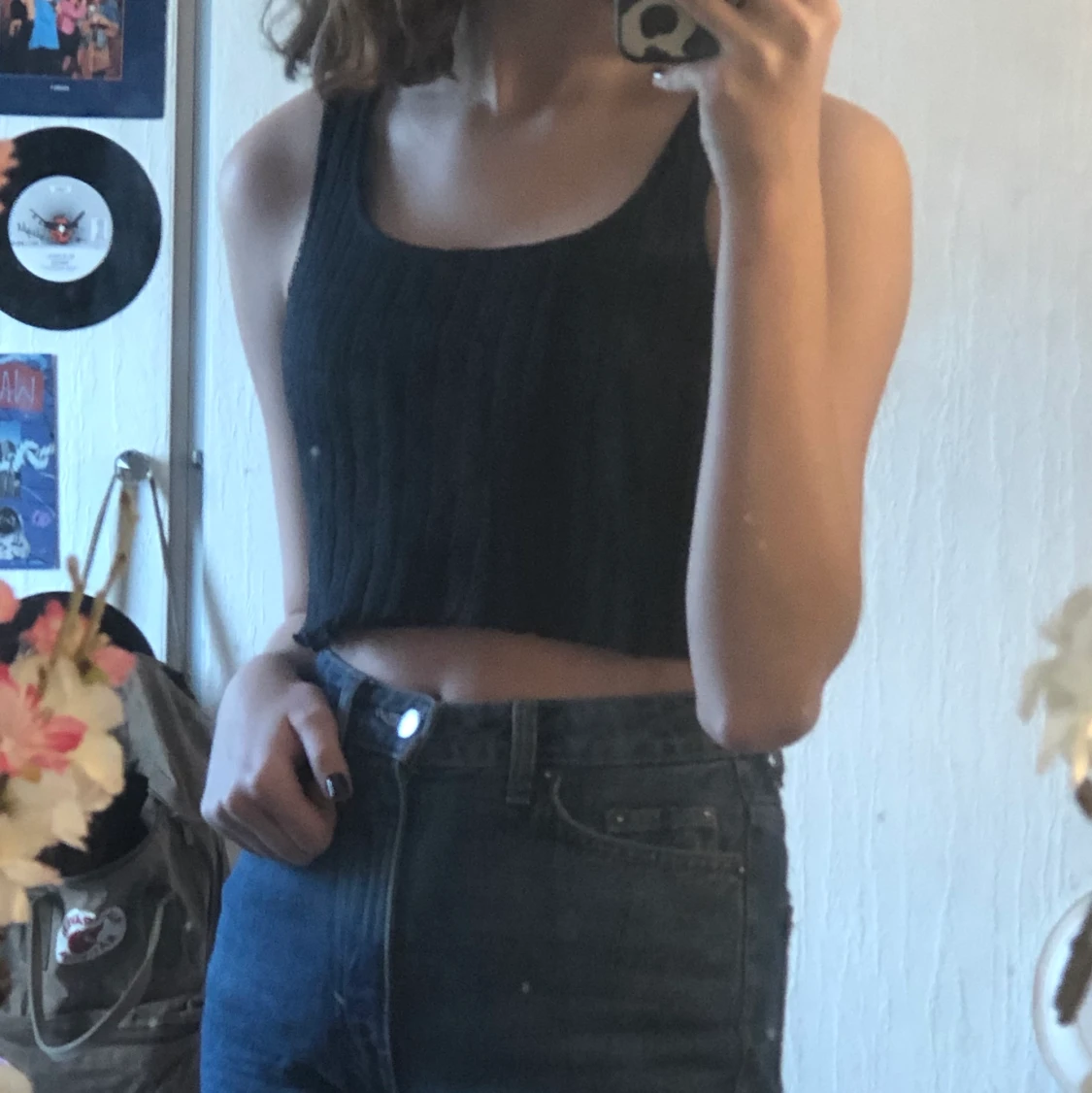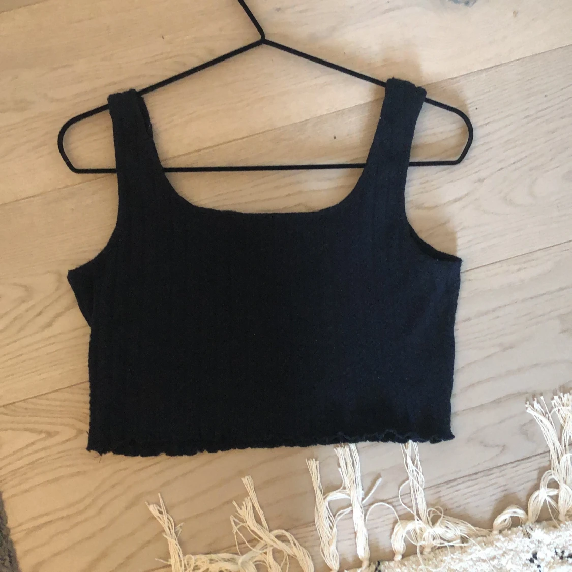 Marinblått linne från shein. Strl S/36 men jag tycker själv att den är lite stor. Denr i ett virkat material. VÄLDIGT TÖJBAR! Lite volang längst ner. ENDAST SWISCH. KOLLA MIN BIO FÖR MER INFO!:)