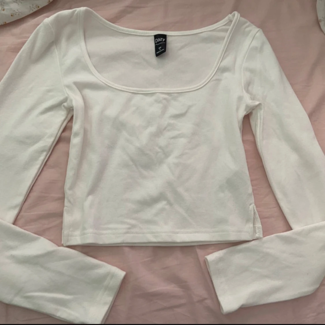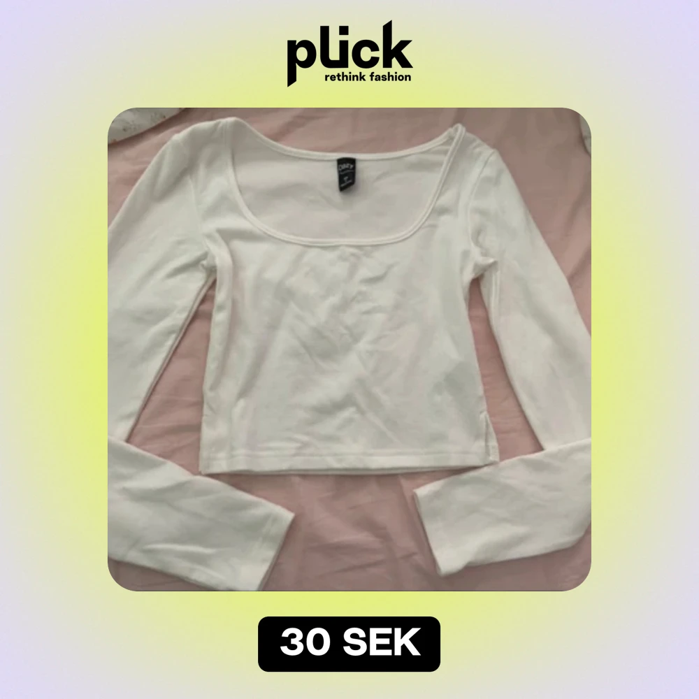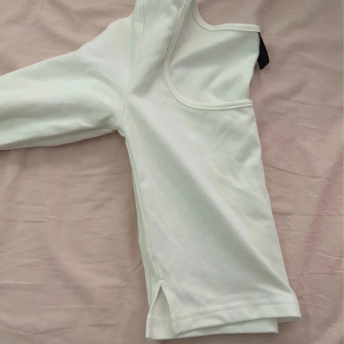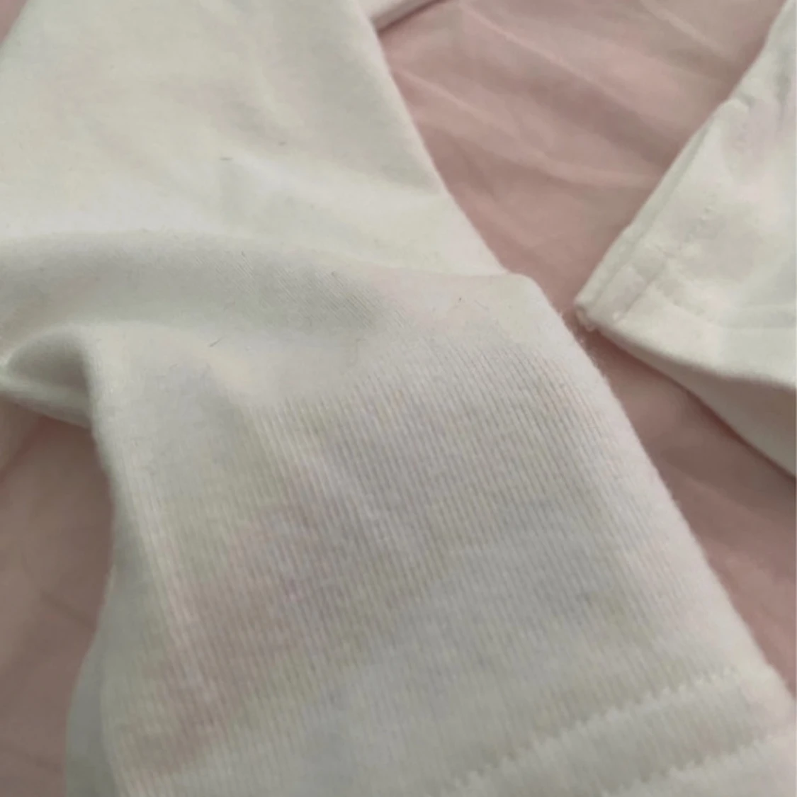 Croppad vit tröja med slit på sidorna, materialet är tjockare vilket passar bra till kallare väder passar Xs mer än S men funkar för båda