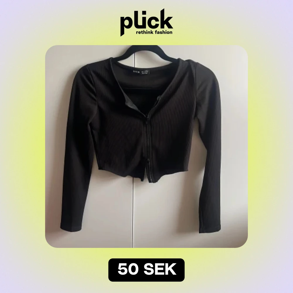 Svart tröja med dragkedja som man kan justera själv. Använd 1 gång. Mjuk och bra skick, ribbad.