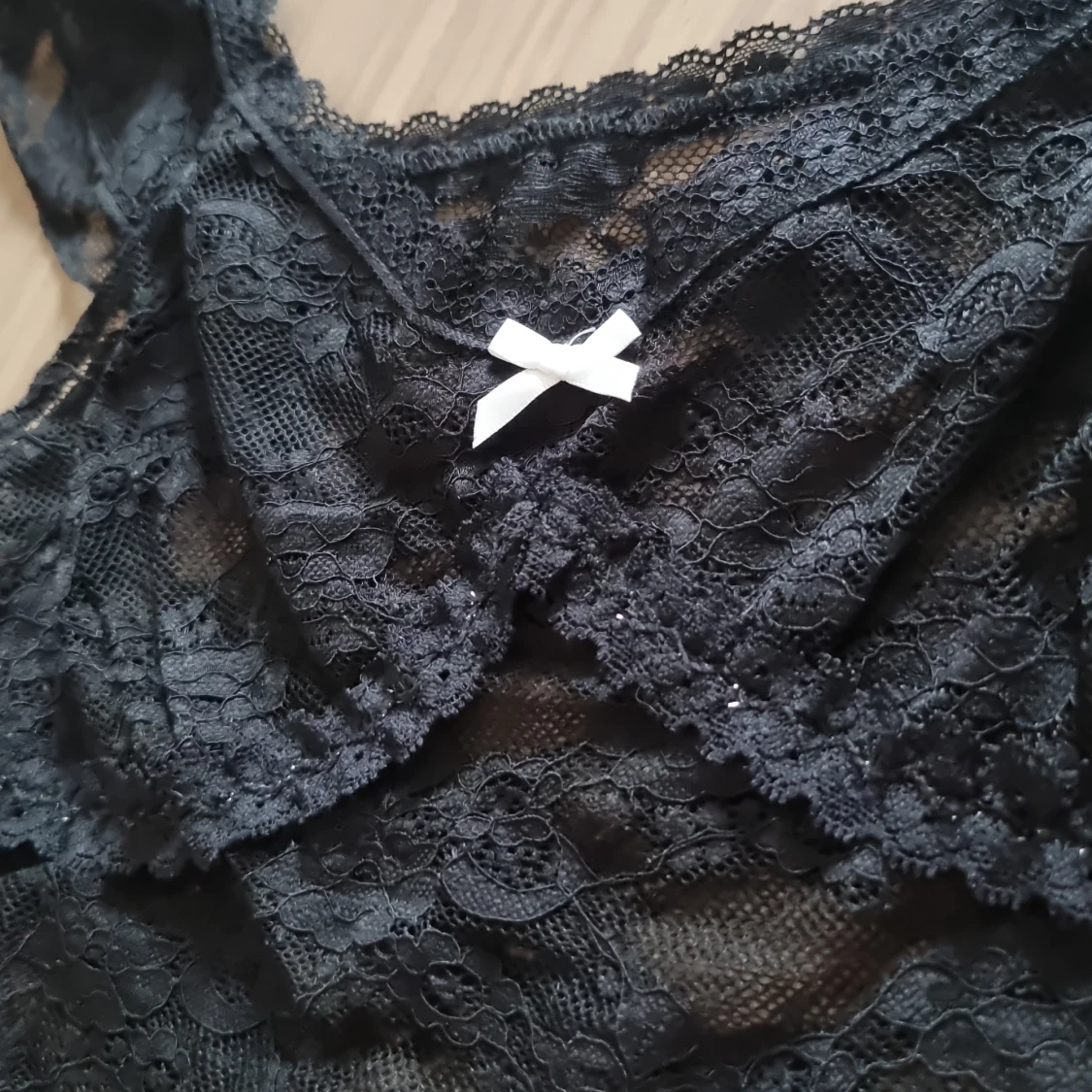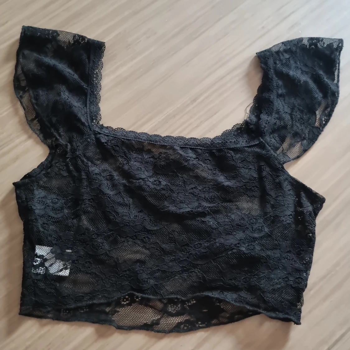 En fin genomskinlig topp som går strax under brösten. Sparsamt använd