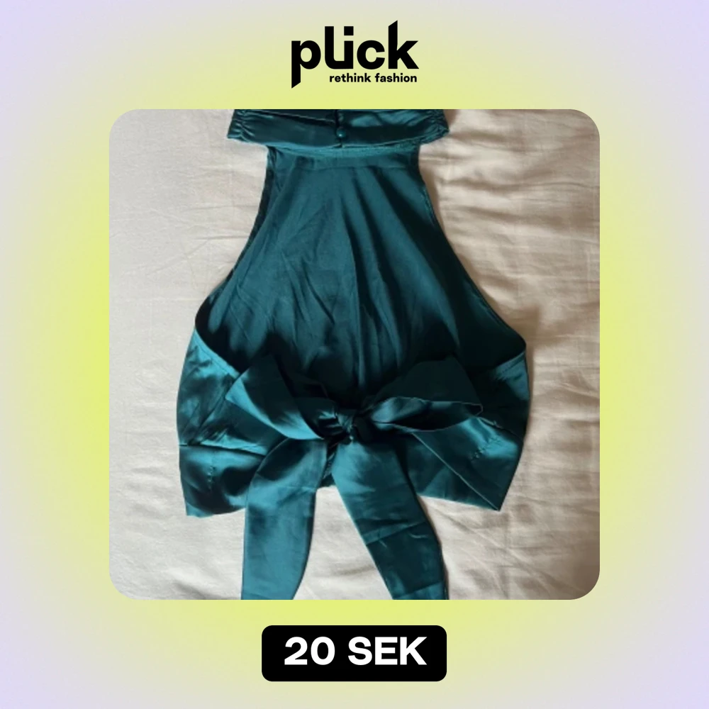 Jättefin topp med öppen rygg. Toppen knyts i ryggen och det är knappar vid nacken. Aldrig använd.