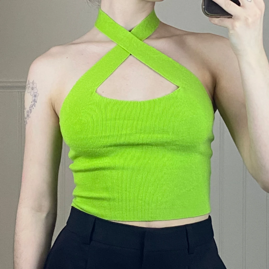 Grön topp från shein i storlek s. Använd men fortfarande i bra skick. Perfekt till sommaren 🎀