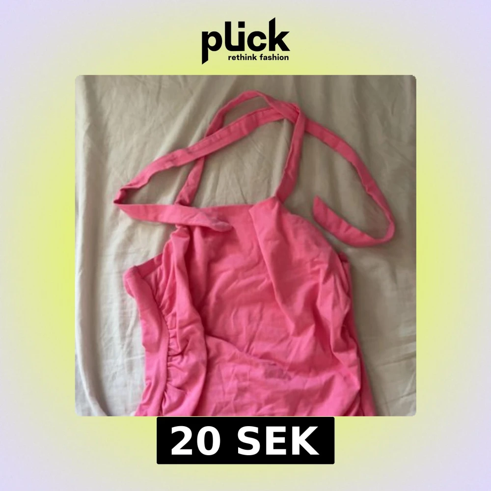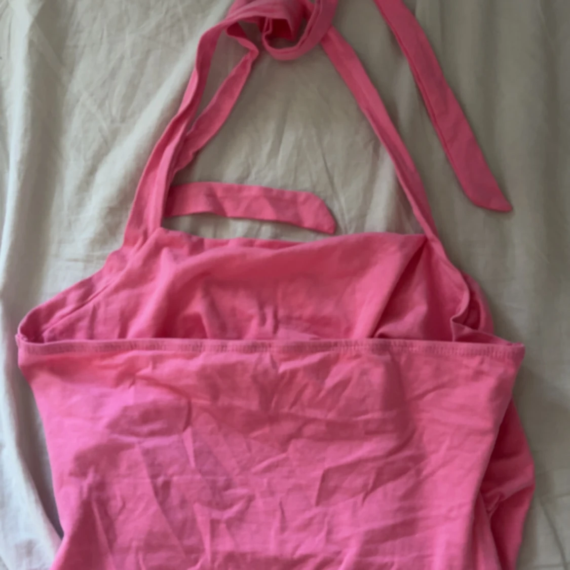 Säljer en söt rosa topp med knytband i nacken. Perfekt för varma dagar och somriga vibes. Materialet känns mjukt och lätt mot huden. Använd några få gånger, inga slitage eller liknande. Superfin💕